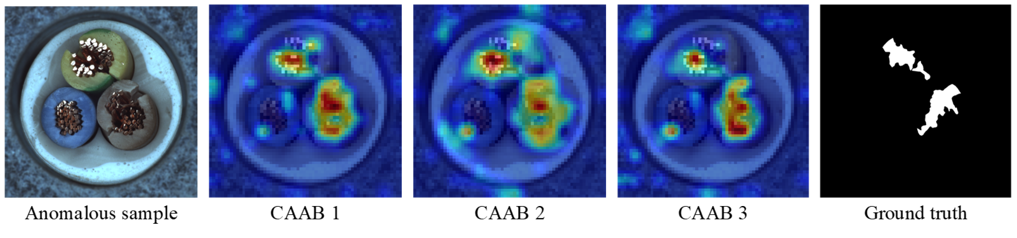- We design CAABs to capture the content consistency in anomaly and abnormal regions. By iterative optimization and segmentation in CAABs, the spatial structures of objects, such as defects and artifacts, are preserved.