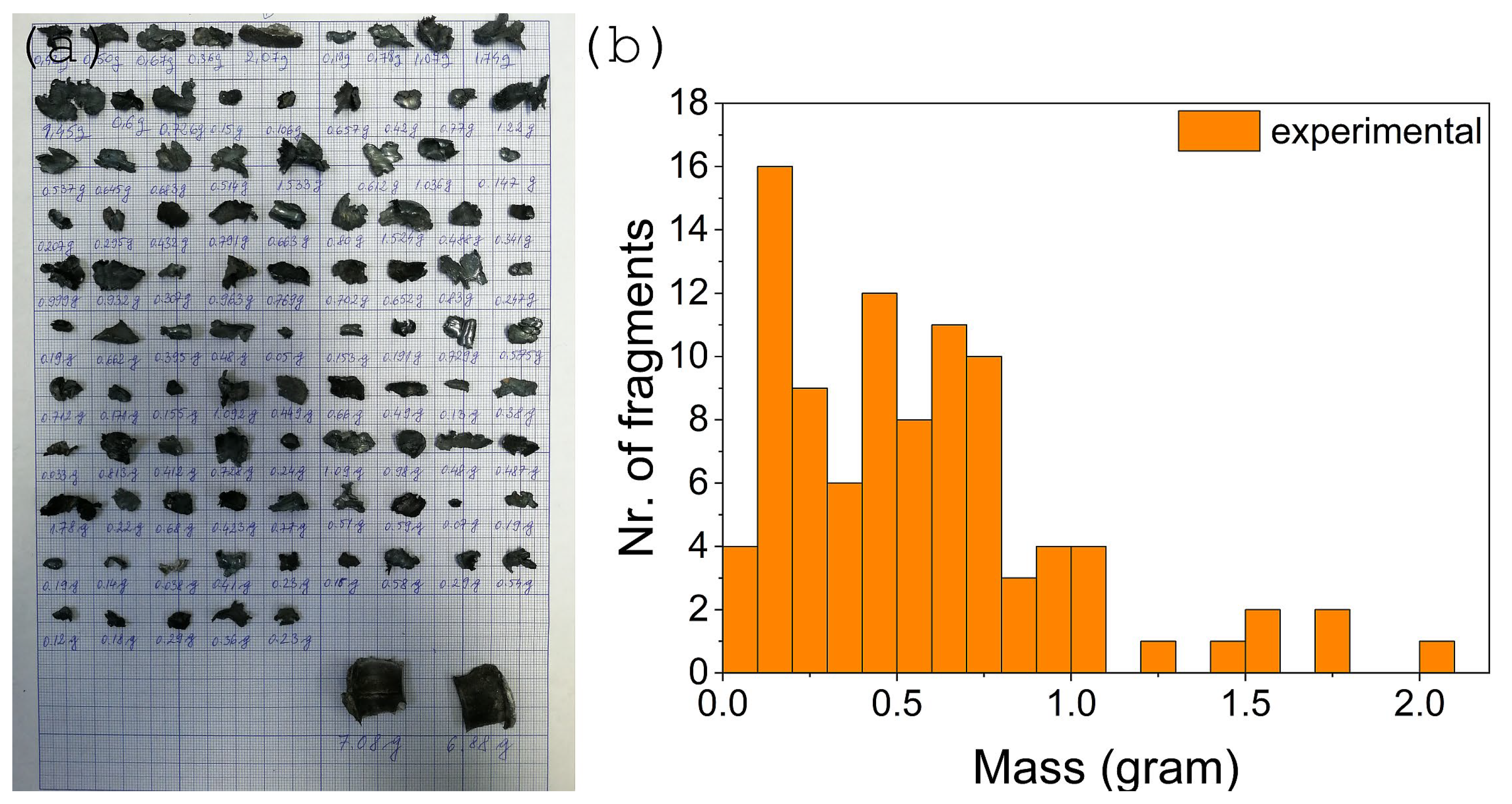 - Kuncser, A.C.; Iacob, N.; Kuncser, V.E. Automatic Investigation Method of Characteristic Distributions of Metallic Fragments Resulting from Explosions (Translated from Romanian) RO-BOPI 12, 2022, pg 48. Available online: https://www.osim.ro/images/Publicatii/Inventii/2022/bopi_122022.pdf (accessed on 11 March 2025).