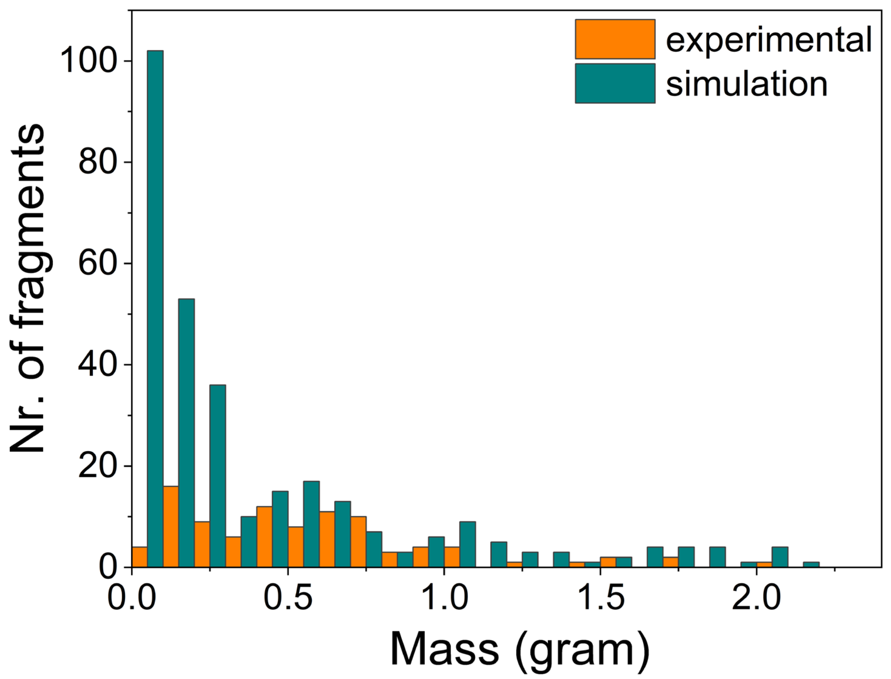 - Grisaro, H.Y.; Dancygier, A.N. Spatial mass distribution of fragments striking a protective structure. Int. J. Impact Eng. 2018, 112, 1–14. [Google Scholar] [CrossRef]