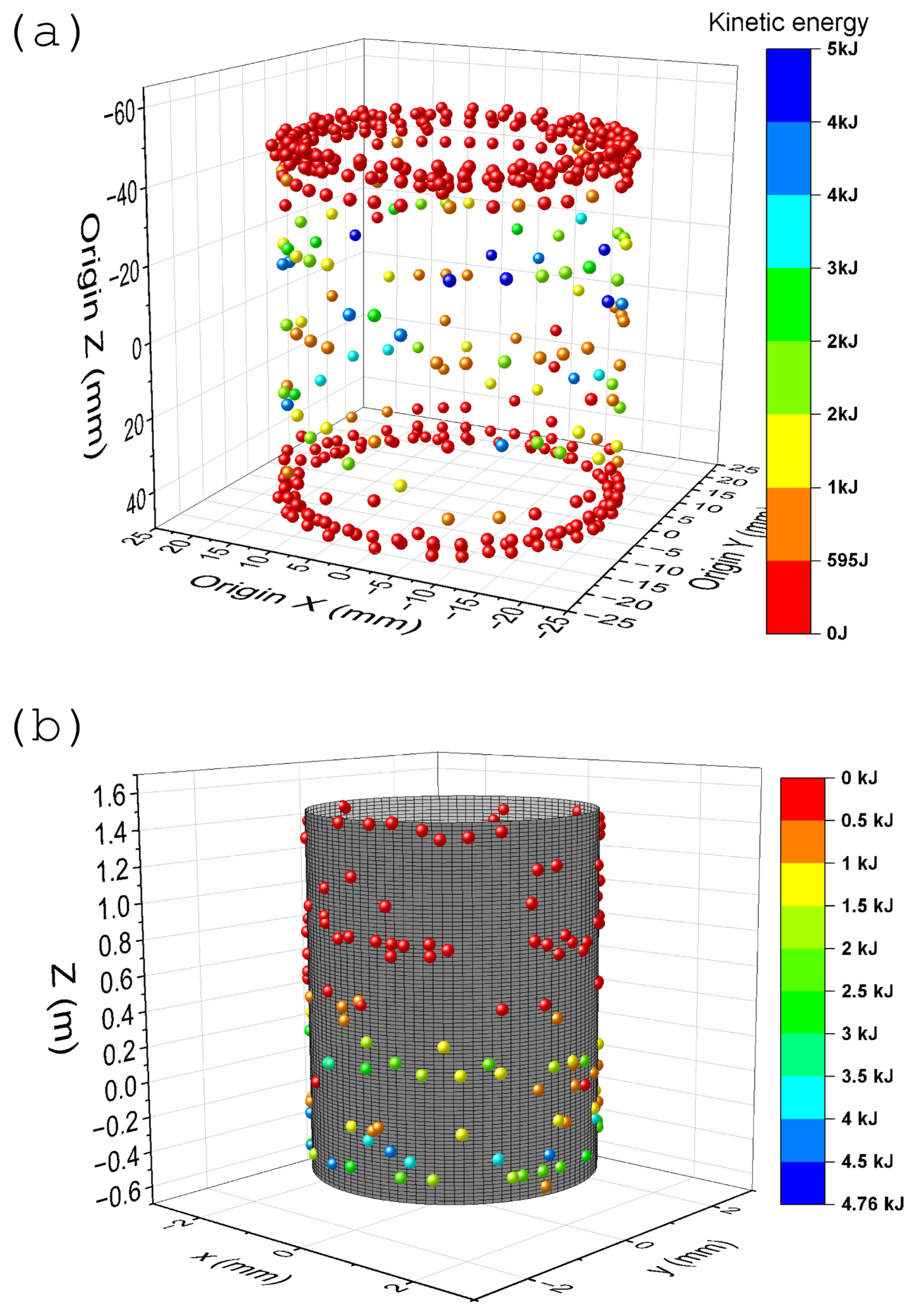 - Huang, G.; Li, W.; Feng, S. Axial distribution of Fragment Velocities from cylindrical casing under explosive loading. Int. J. Impact Eng. 2015, 76, 20–27. [Google Scholar] [CrossRef]