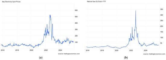 Italy Electricity Spot Prices (EUR/MWhe) (a) and Natural Gas EU Dutch TTF (EUR/MWhp) (b) (updated to 5 March 2025).
