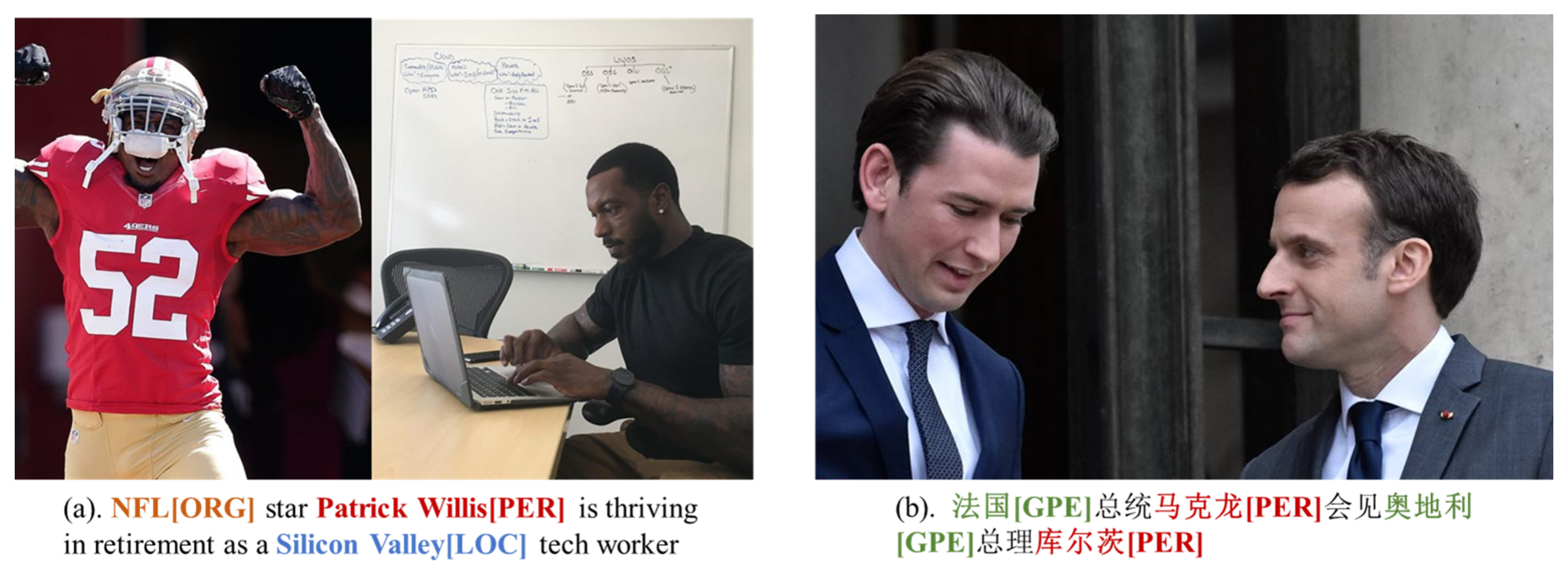 - Lu, D.; Neves, L.; Carvalho, V.; Zhang, N.; Ji, H. Visual attention model for name tagging in multimodal social media. In Proceedings of the 56th Annual Meeting of the Association for Computational Linguistics, Melbourne, Australia, 15–20 July 2018; Long Papers. Volume 1, pp. 1990–1999. [Google Scholar]
