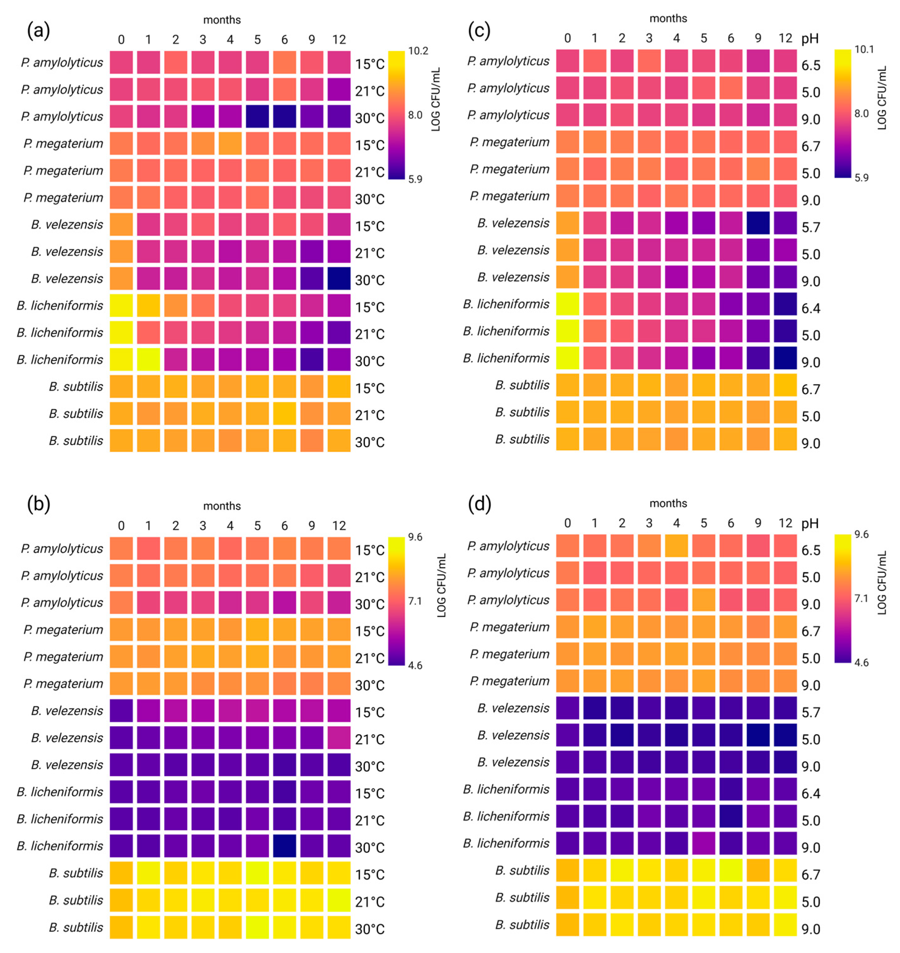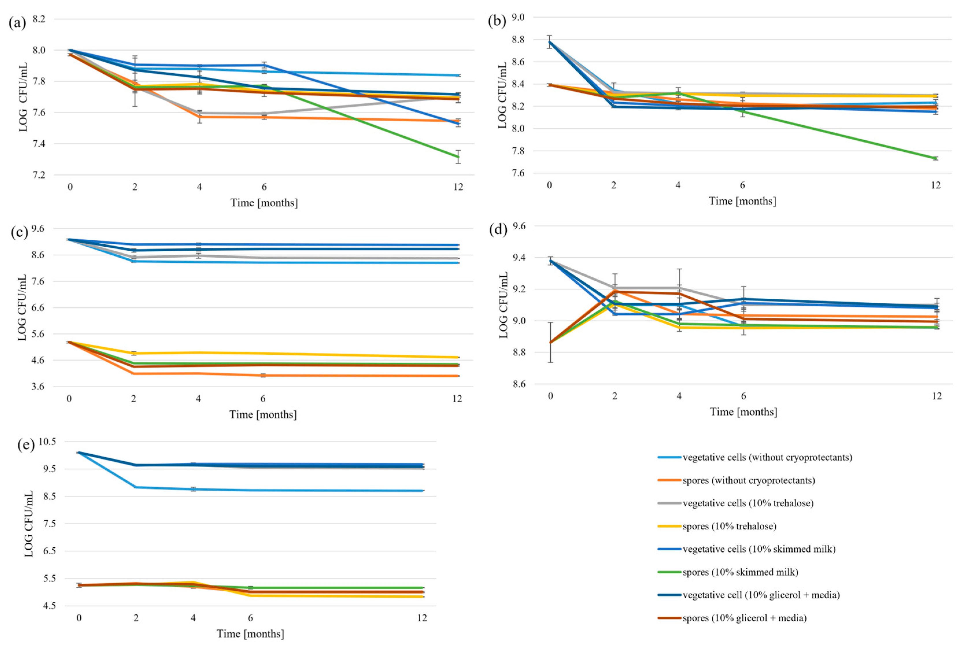 - Phoane, K.V.; Tjoa, E.; Joon, S.; Karmawan, L.U.; Moehario, L.H. Effect of Temperature and Preservation Period on the Viability of Lyophilized Bacillus subtilis. Indo Glob. J. Pharm. Sci. 2022, 12, 153–155. [Google Scholar] [CrossRef]