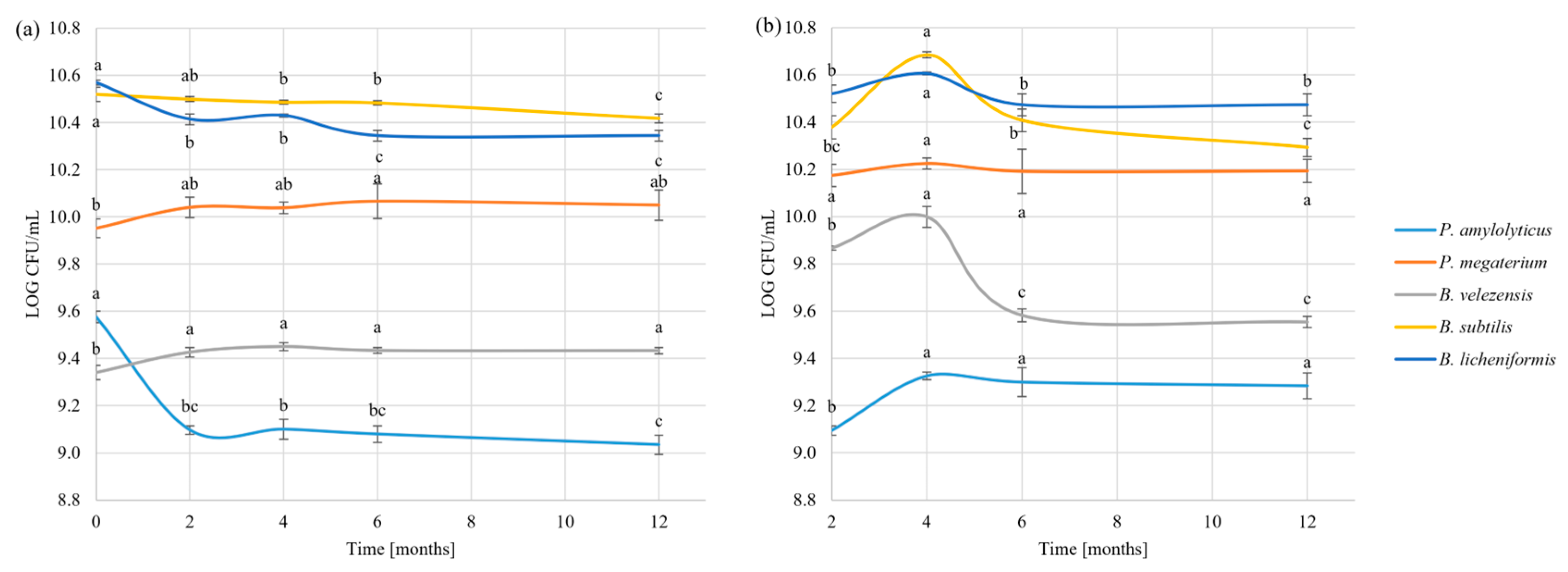 - Bogdan-Golubi, N.; Slanina, V. The viability of bacillus, pseudomonas and lactic acid bacteria strains after 15 years of storage. In Proceedings of the 5th International Scientific Conference on Microbial Biotechnology, Chisinau, Moldova, 12–13 October 2022; Institute of Microbiology and Biotechnology: Chisinau, Moldova, 2022. [Google Scholar] [CrossRef]