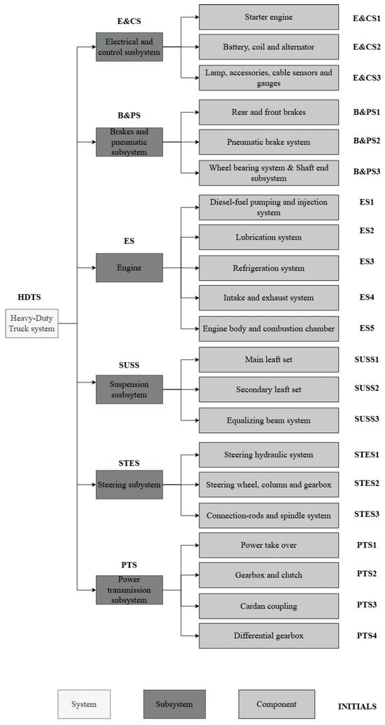 Extending this system-level integration, the subdivision of the HDTS into critical subsystems—such as the engine, brakes and pneumatic subsystem, suspension, steering, power transmission, and electric and control—introduces a finer resolution for analyzing risk propagation (Figure 3).