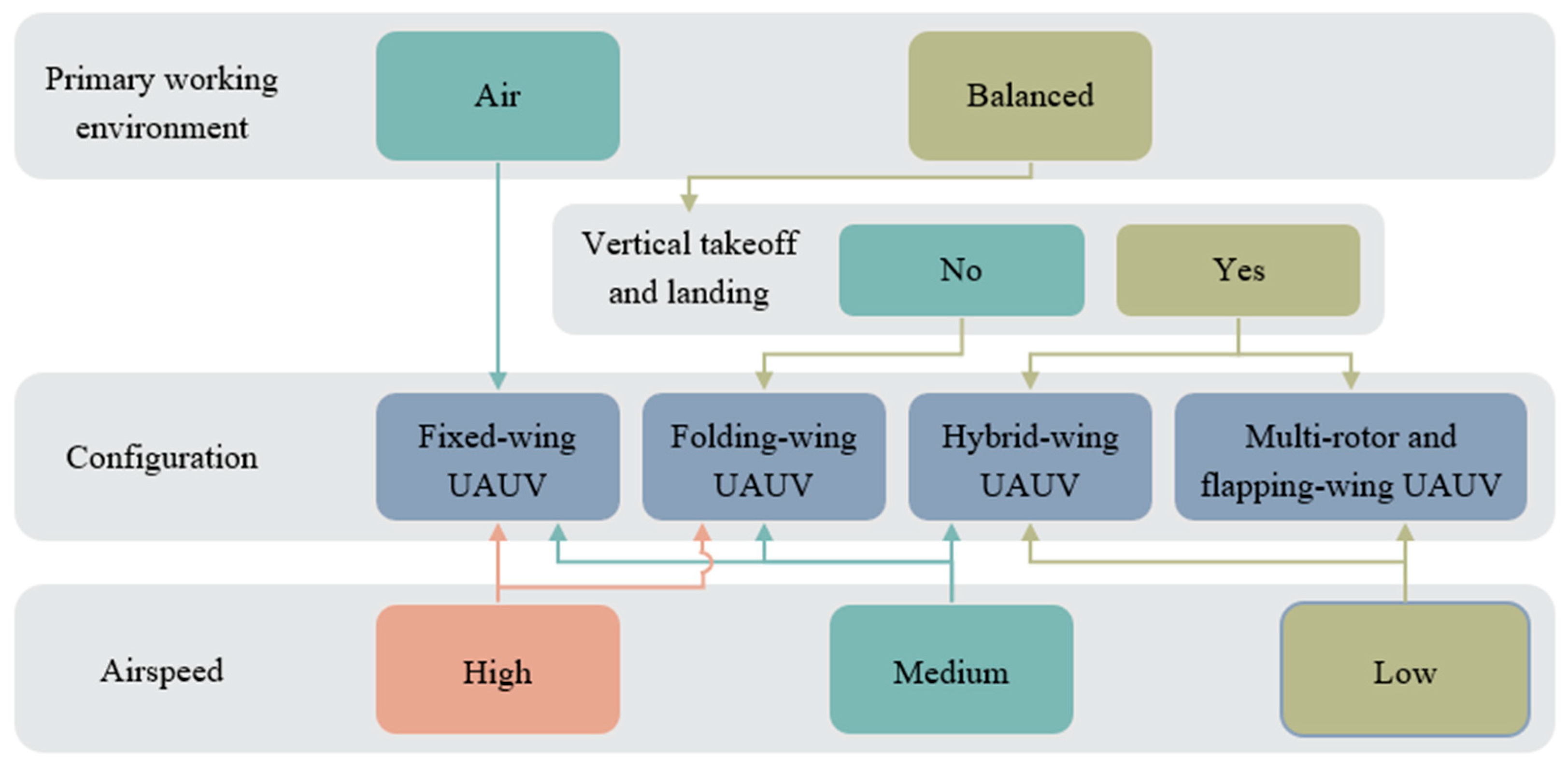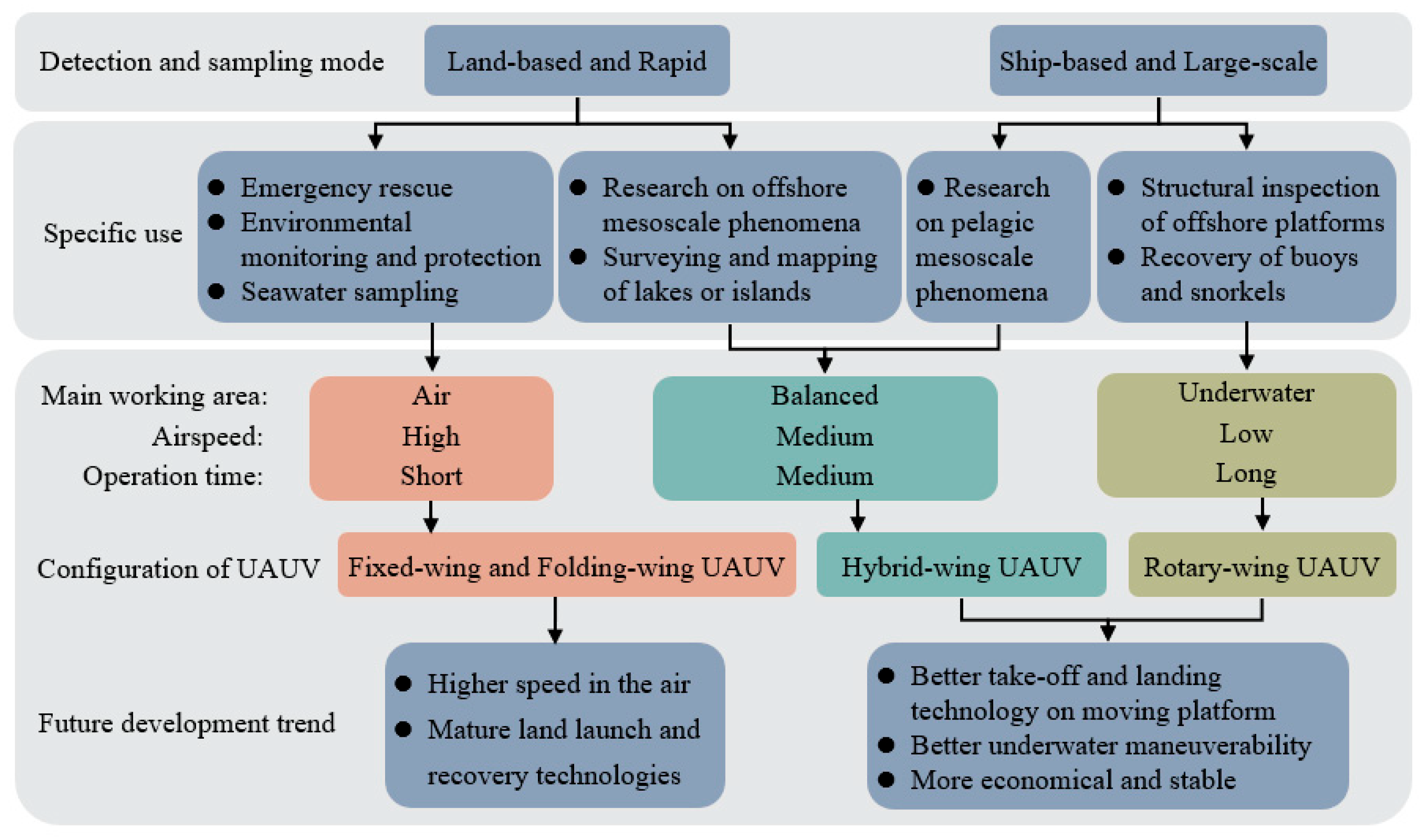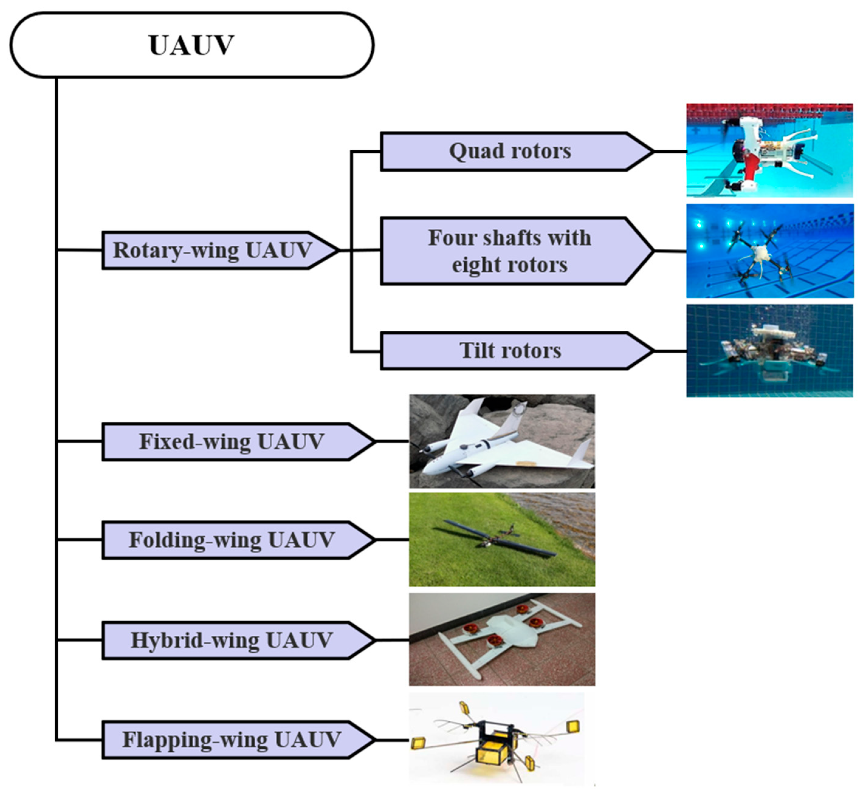 | UAUV configuration | Fixed-wing and folding-wing UAUVs | Rotary-wing and hybrid-wing UAUVs | Fixed-wing and folding-wing UAUVs |