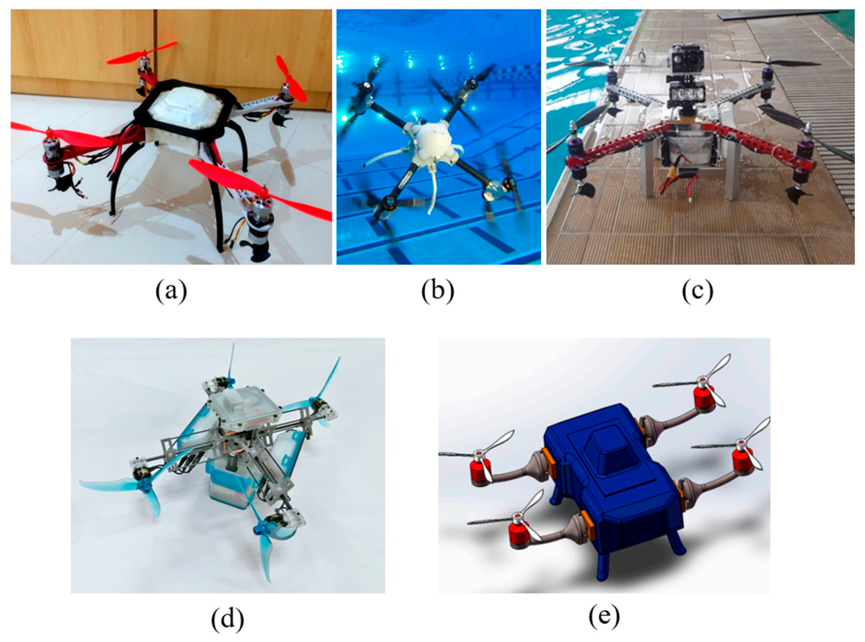| Propulsion | Both air and underwater propellers | Only air propellers | Dual purpose propellers | Deformable propellers |