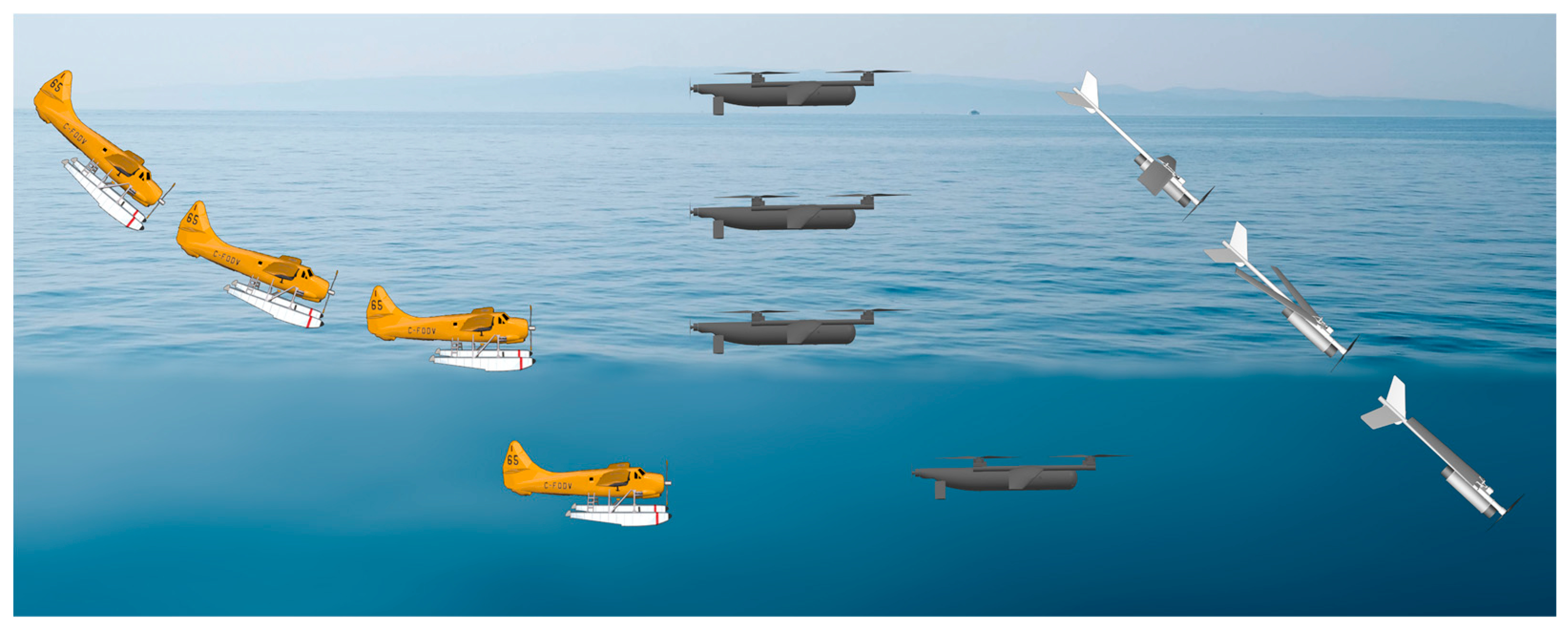 - Yang, X.; Wang, T.; Liang, J.; Yao, G.; Liu, M. Survey on the novel hybrid aquatic–aerial amphibious aircraft: Aquatic unmanned aerial vehicle (AquaUAV). Prog. Aerosp. Sci. 2015, 74, 131–151. [Google Scholar] [CrossRef]