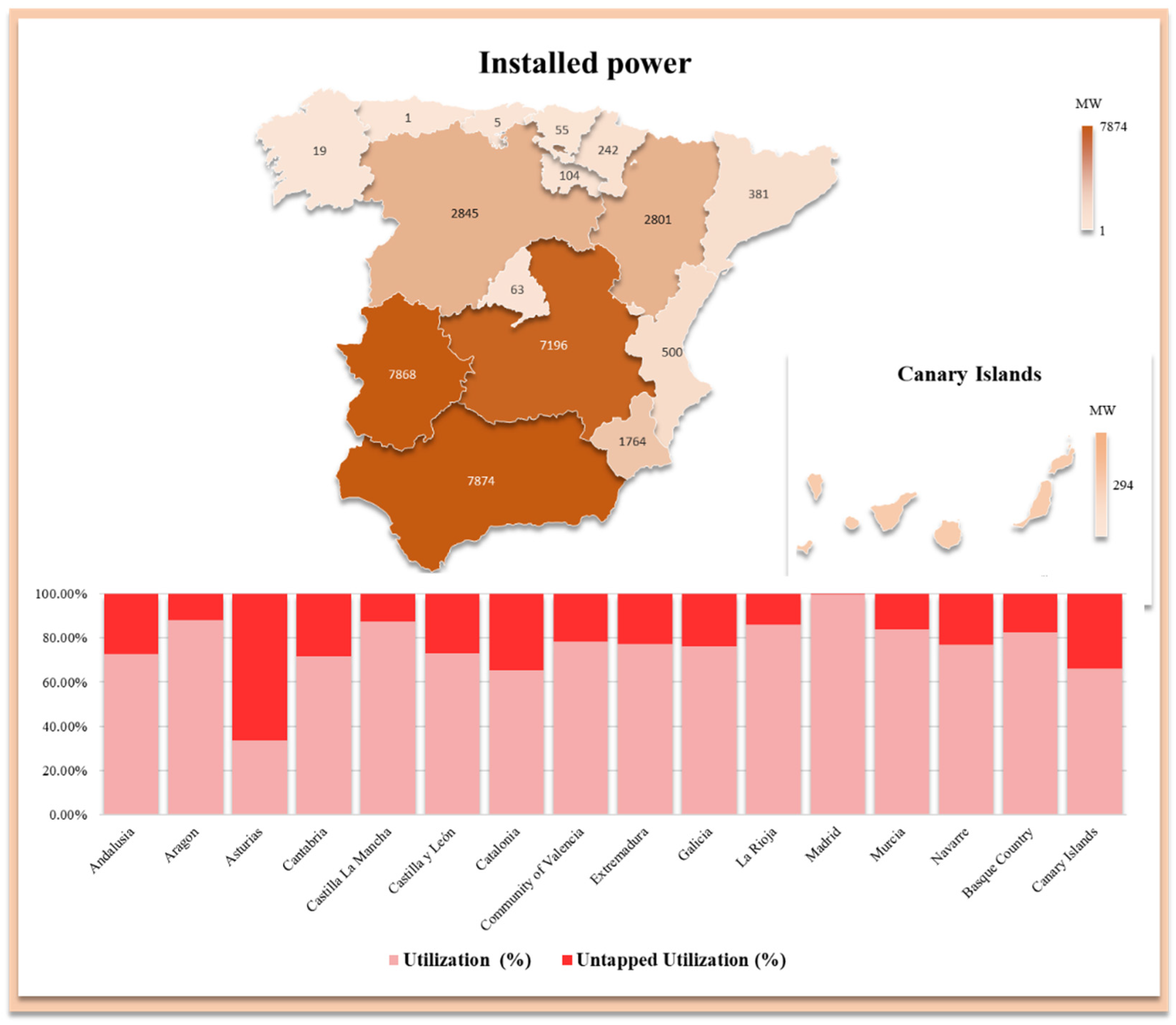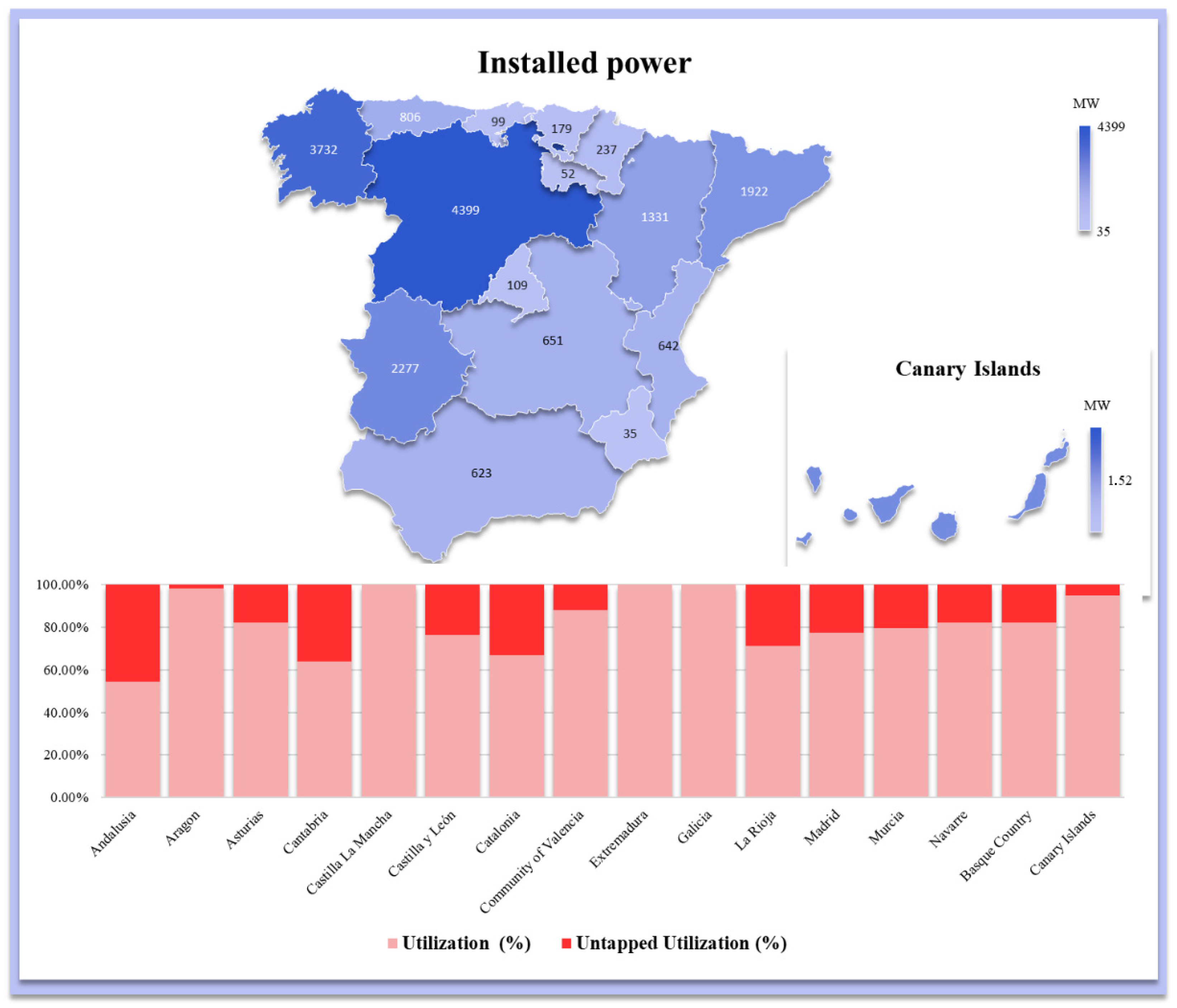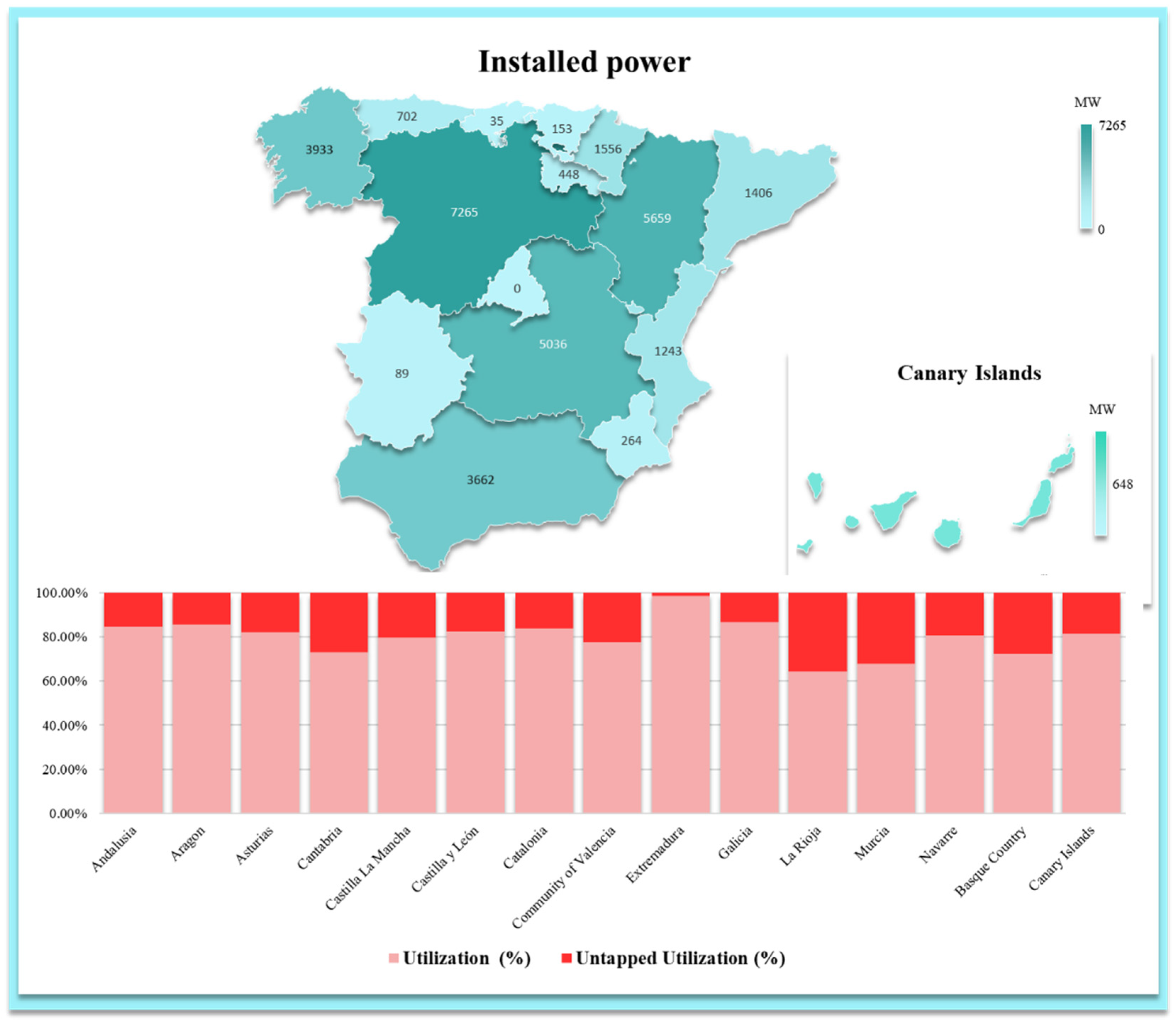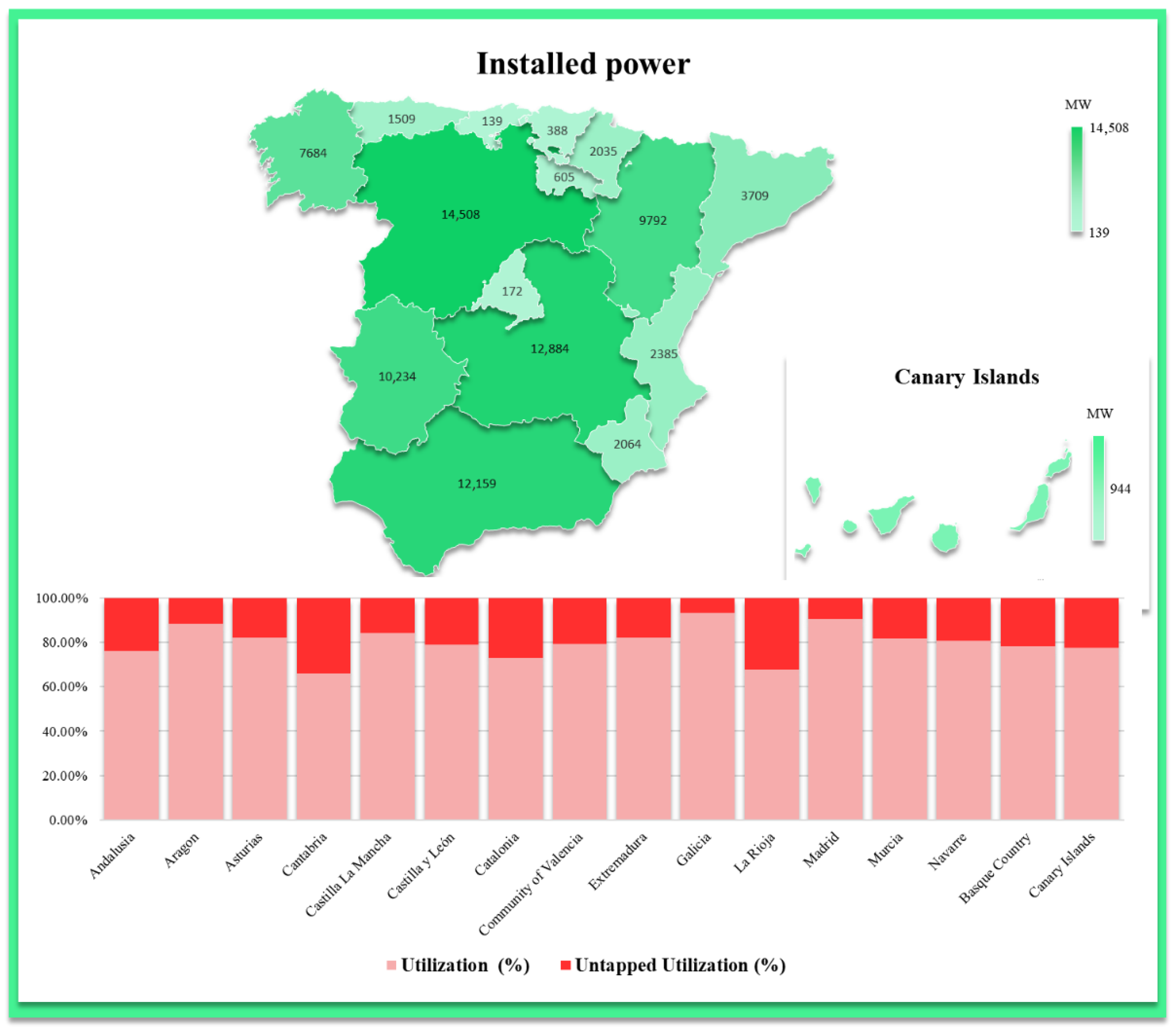 The research reveals a clear geographical concentration of untapped potential, with more than 63% located in four regions (Castile and León, Andalusia, Castile-La Mancha and Extremadura). This finding suggests that territorial planning for the deployment of electrolysers and storage systems should consider criteria of geographical efficiency, existing infrastructure and availability of renewable resources in order to maximise technical and economic performance.