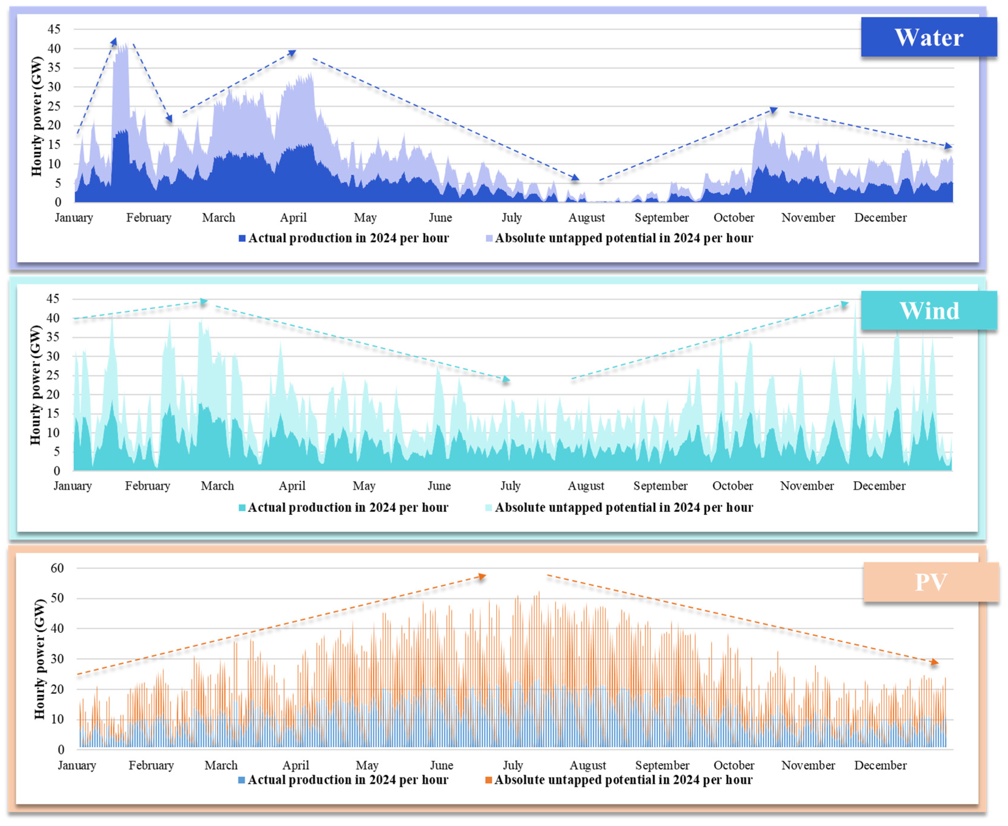 unutilized) was calculated as the difference between the theoretical maximum production and the actual generation in 2024: