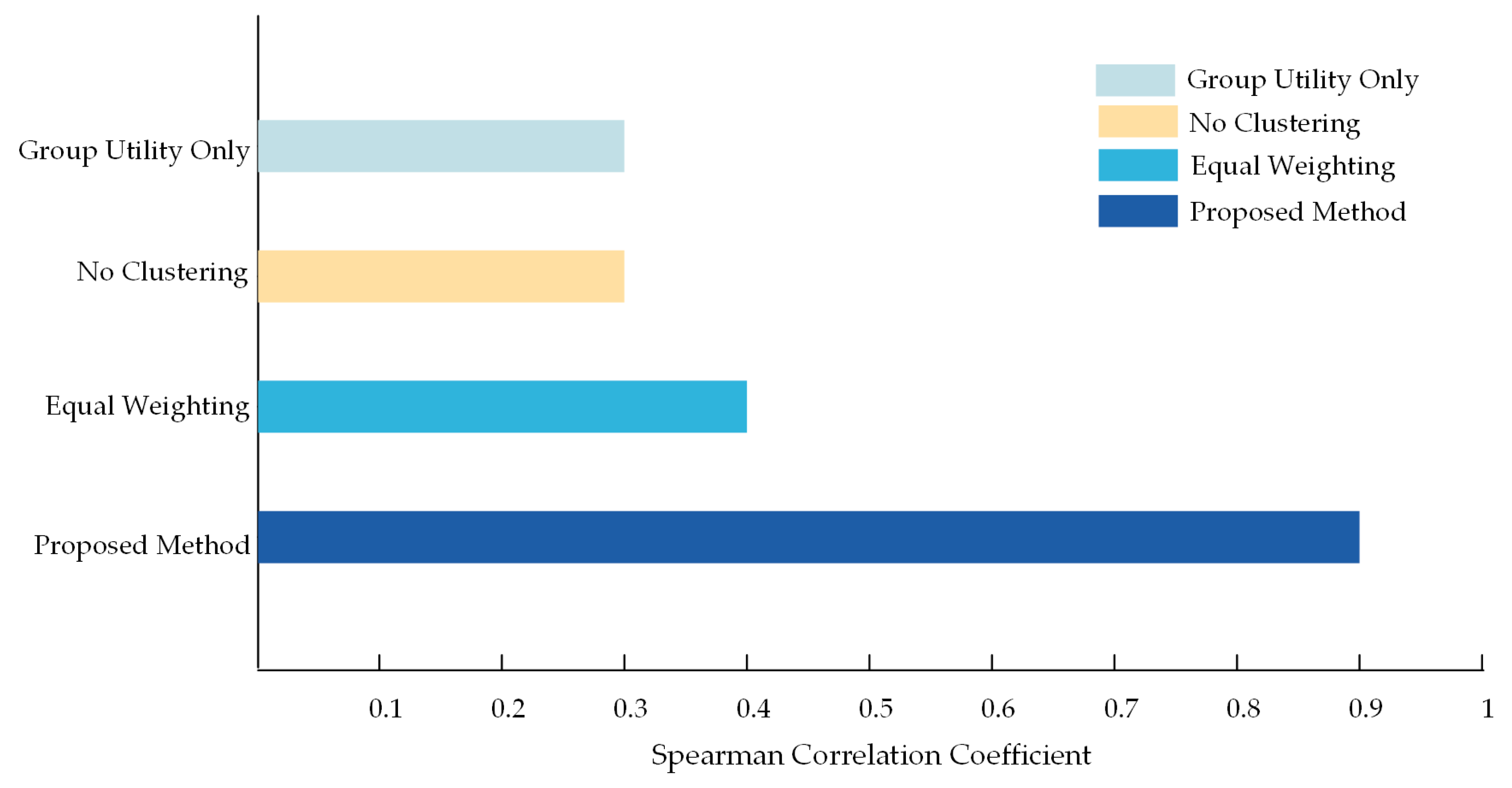 - The comparison of Spearman correlation coefficients between these three methods and the proposed method is illustrated in Figure 7.