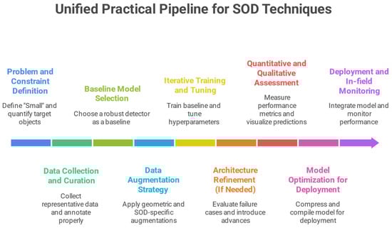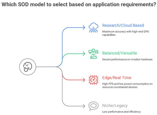 The final step in our methodology was to synthesize all of the extracted quantitative data, seeking to provide a meta-view, or overview, of the state of the art in SOD. We gathered the performance and efficiency metrics from previously included papers and display them in a master comparison table (see Section 6.1). To facilitate a meaningful comparison between the methods, we organized the results according to the benchmark datasets (e.g., MS COCO, VisDrone) and, where possible, normalized the efficiency metrics by including the type of hardware used (e.g., NVIDIA A100, or RTX 4090). This quantitative synthesis enables a direct comparison between the methods across domains and identifies the overarching trends, accuracy vs. speed tradeoffs, and SOD performance frontiers. Our rigorous and transparent methodology provides credibility and utility to the findings presented in the survey.