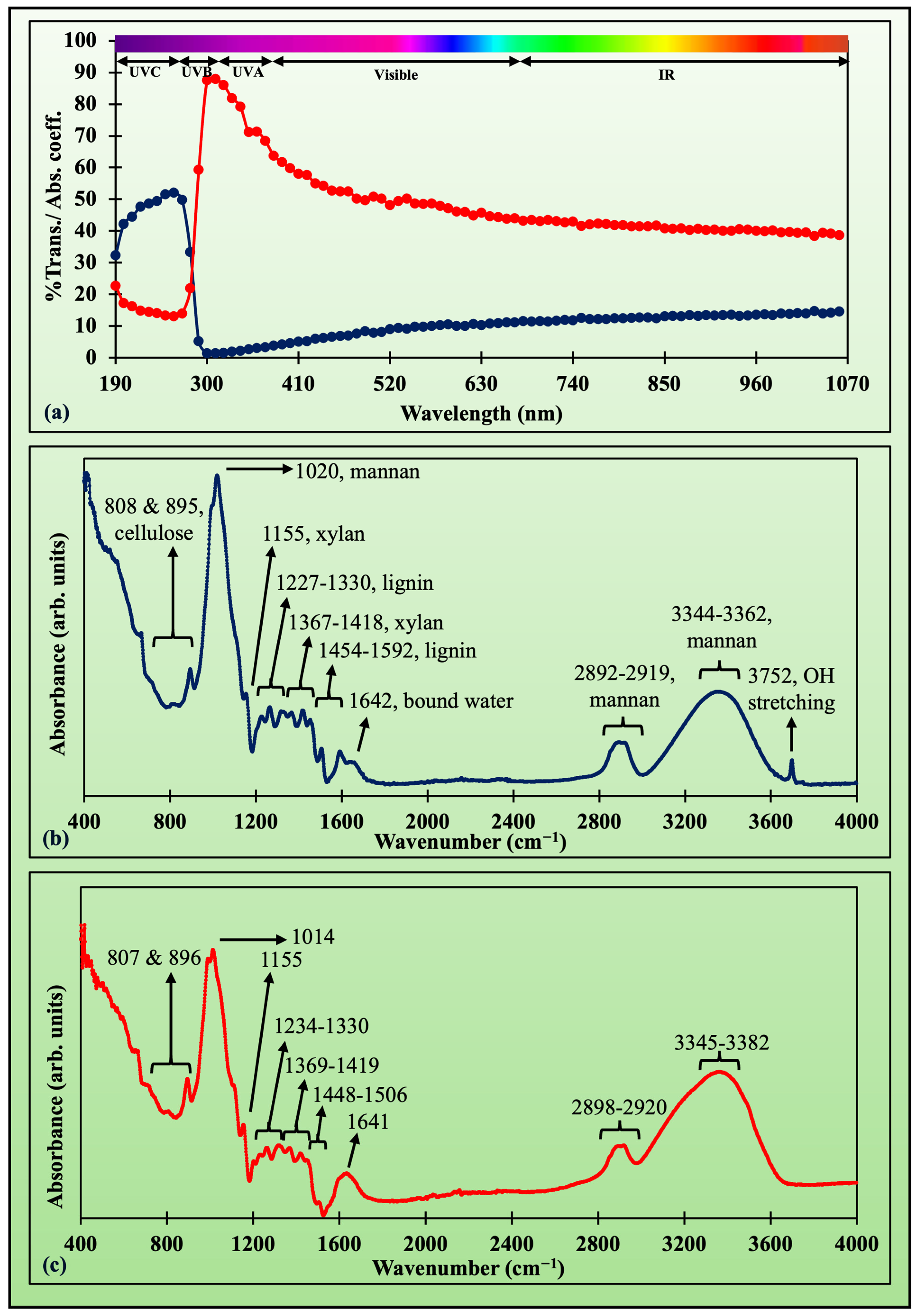 - Rajeshwari, E.R.; Sathanya, P.S.; Vignesh, S.; Chandrasekar, V.; Baskaran, N. Valorization of Borassus Flabellifer Sprout Peel: Synthesis and Characterization of Carboxymethyl Cellulose for Biodegradable Packaging. Biomass Convers. Biorefinery 2025, 15, 17829–17852. [Google Scholar] [CrossRef]
