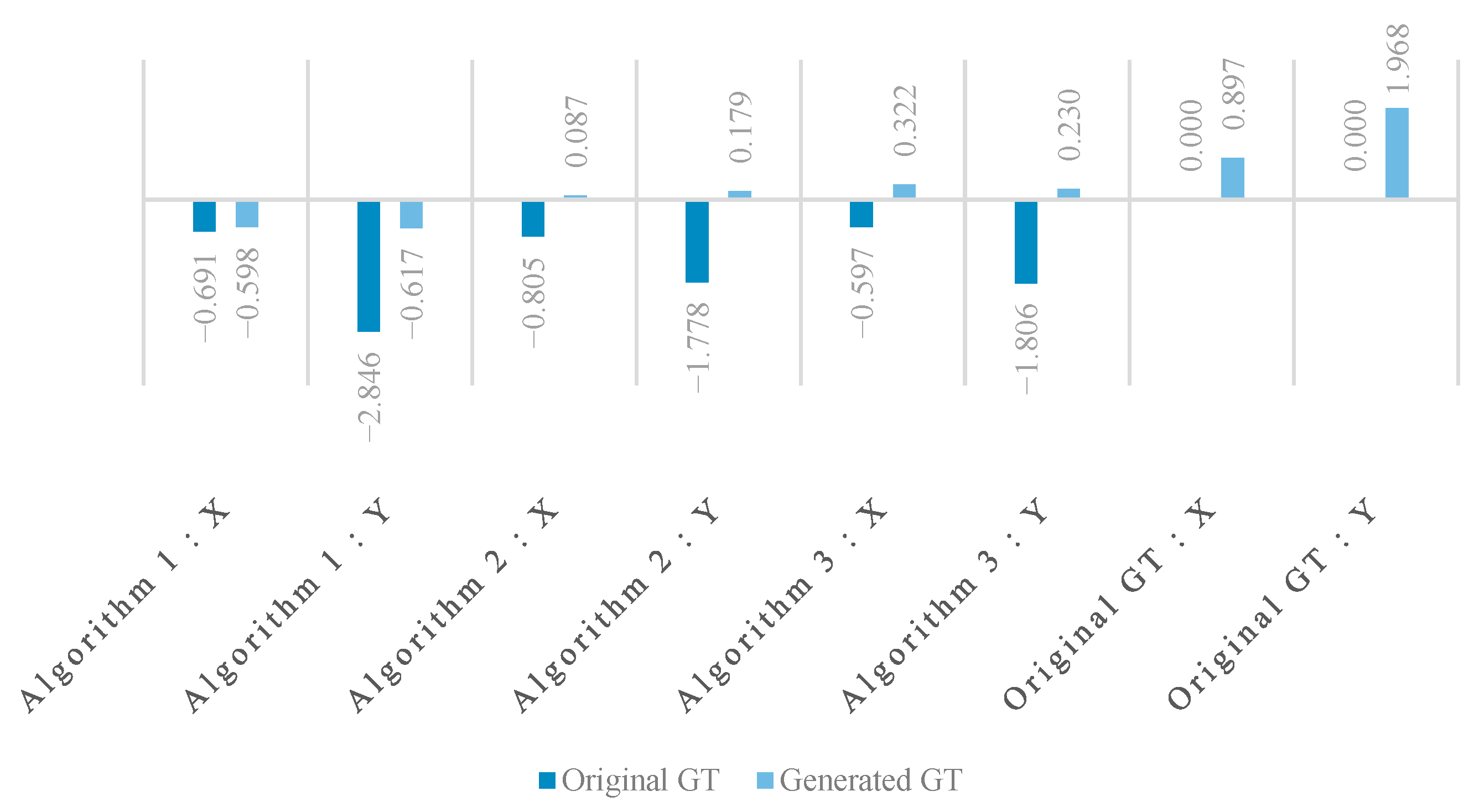 Figure 9) in both X and Y directions between the ground truth landmarks and the objects detected by all three algorithms.