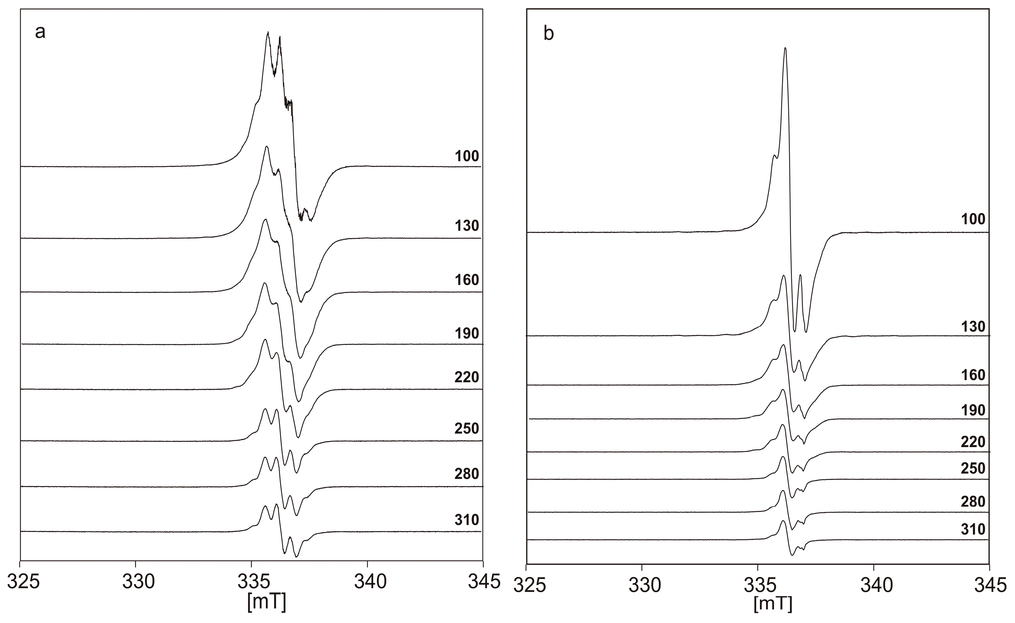 - Weil, J.A.; Bolton, J.R. Electron Paramagnetic Resonance. Elementary Theory and Practical Applications; Wiley-Interscience: Hoboken, NJ, USA, 2007; ISBN 978-0-471-75496-1. [Google Scholar]