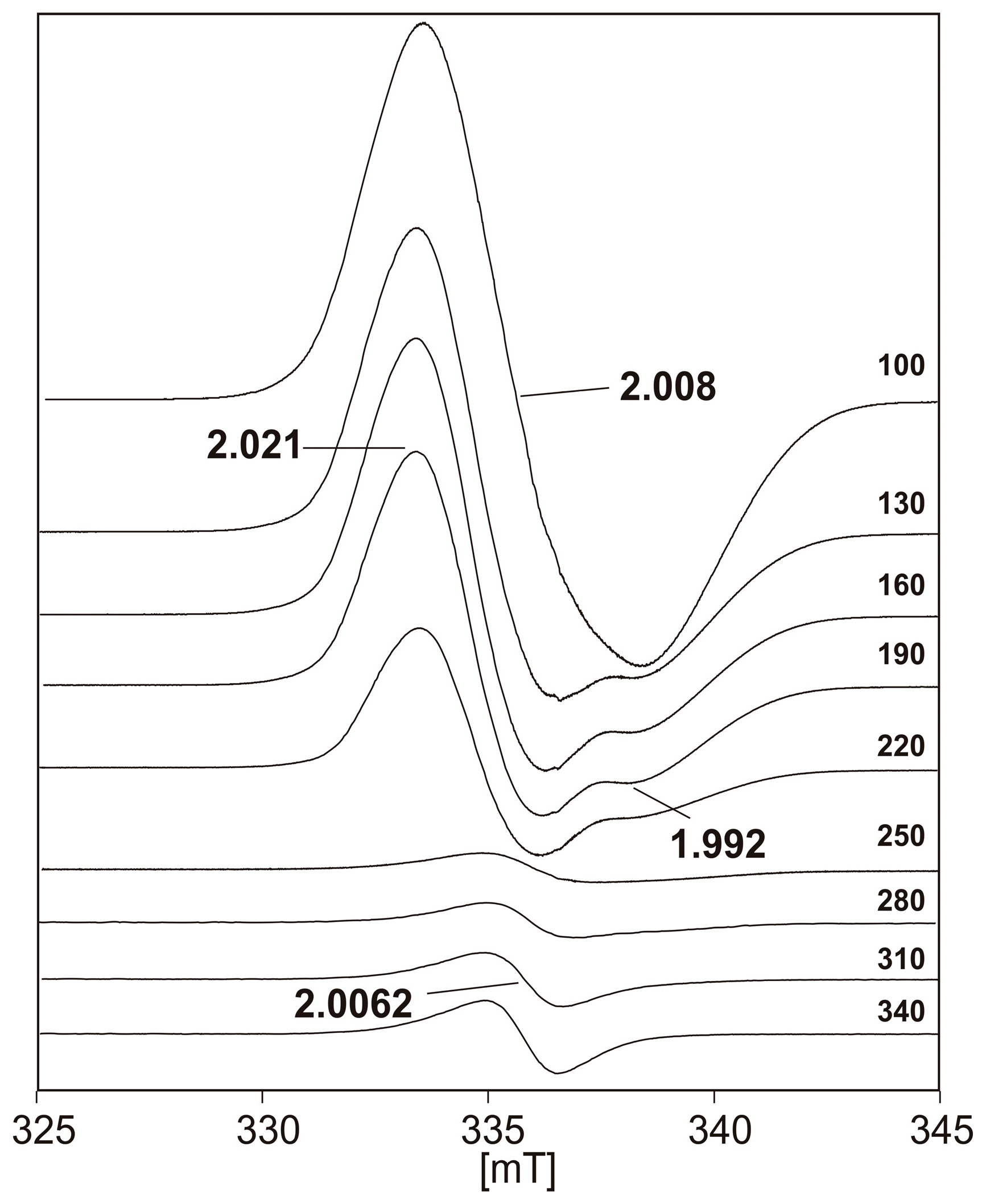 | C2O4•− EXP (gavg ≈ 2.0013) | CO2•− (gavg ≈ 2.0007) | C2O4•− DFT (gavg ≈ 2.0118) | r2 (Fit Quality) | p [mW] | Tmeas [K] |