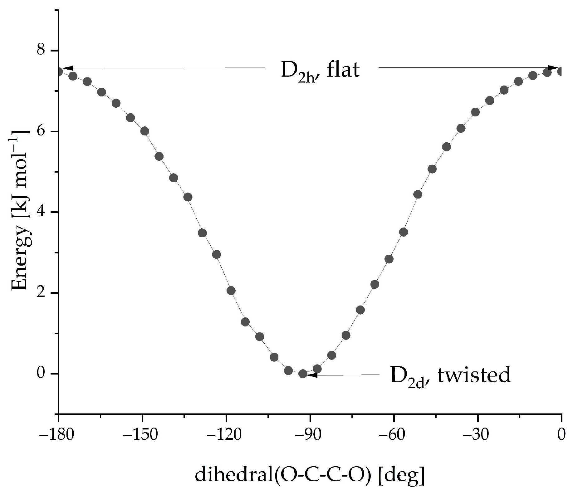 - Dean, P.A.W. The Oxalate Dianion, C2O42−: Planar or Nonplanar? J. Chem. Educ. 2012, 89, 417–418. [Google Scholar] [CrossRef]
