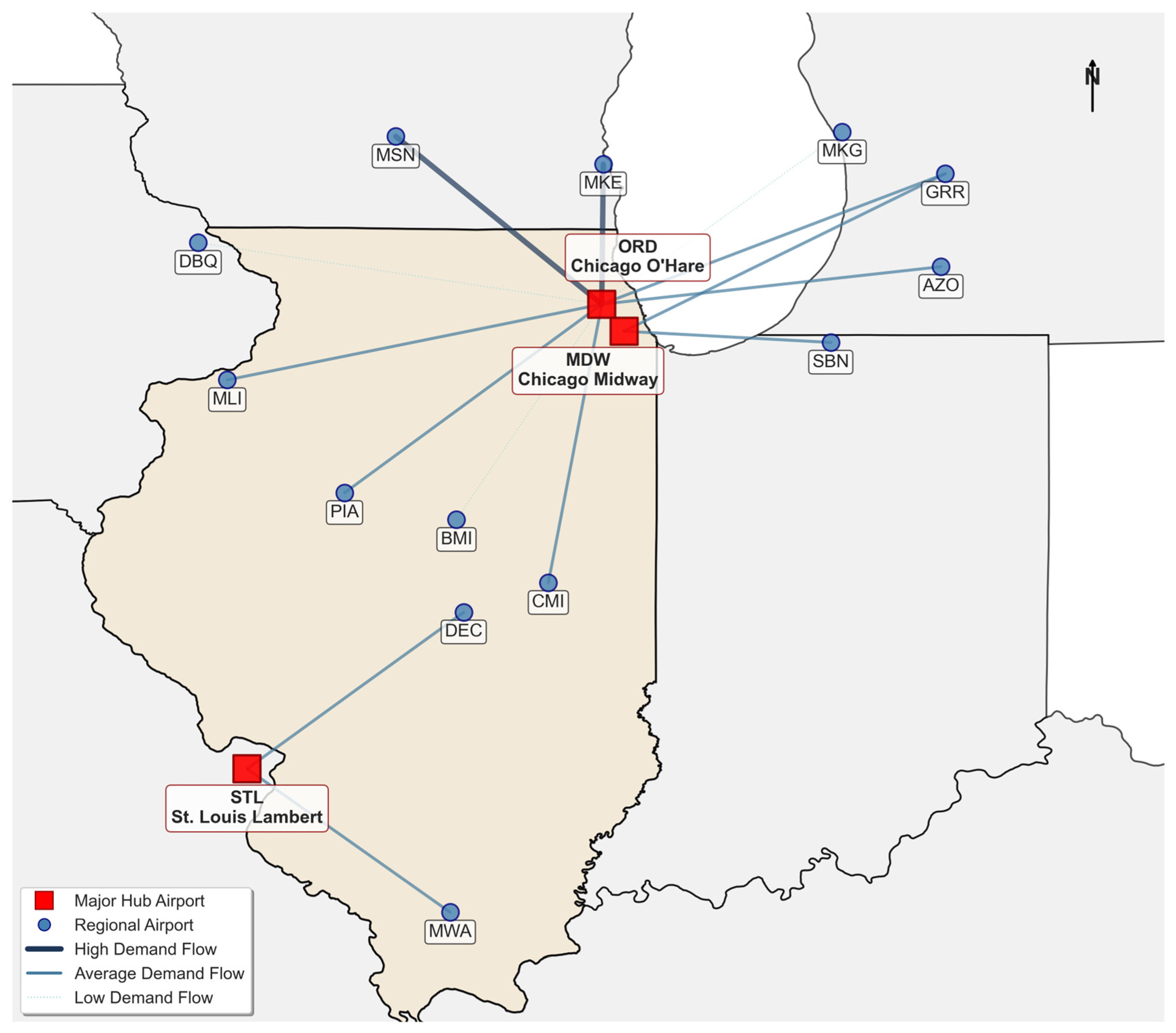 Figure 8. Short-haul air routes in Illinois.
