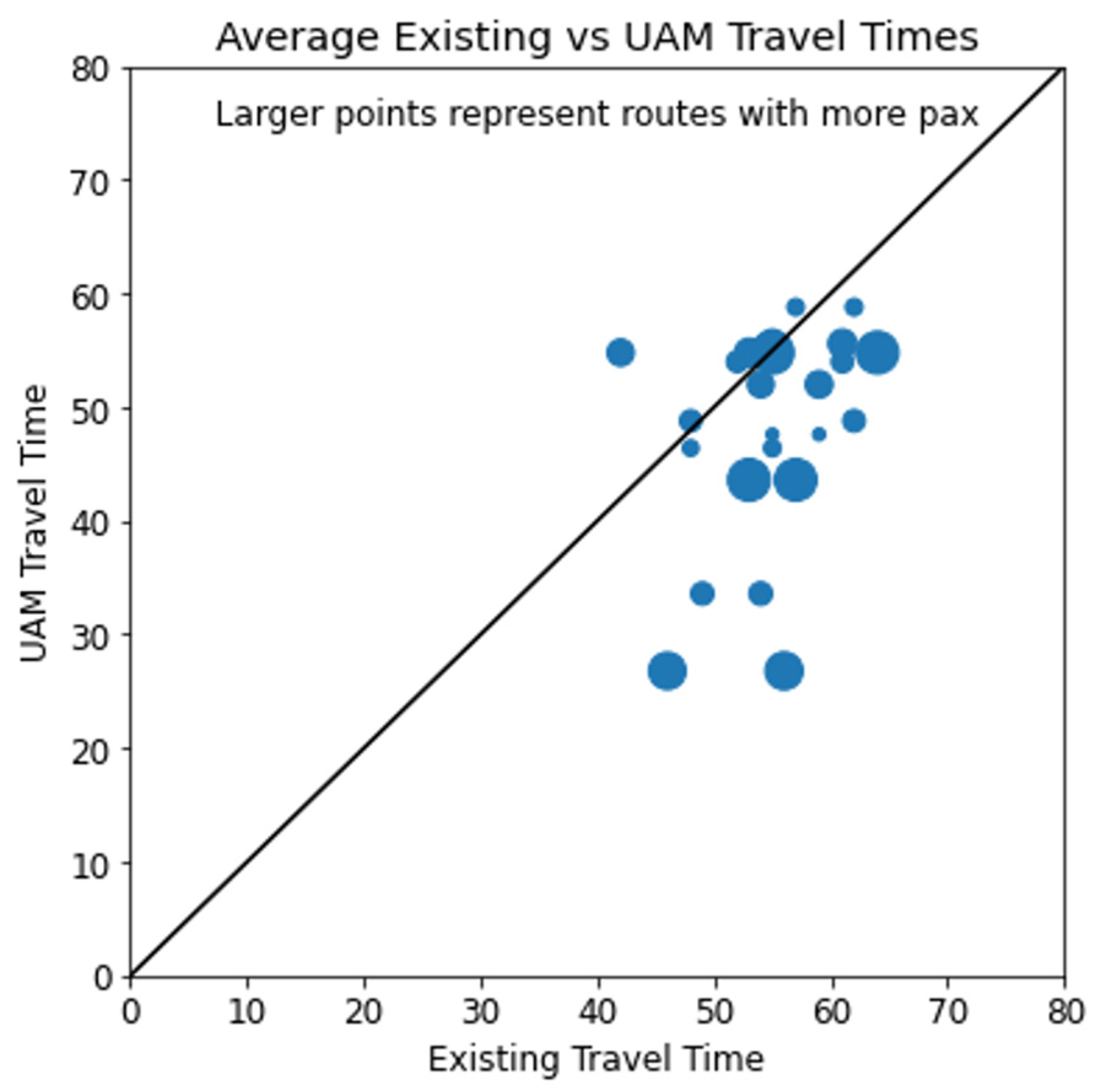 Figure 10. Existing vs. UAM travel times.