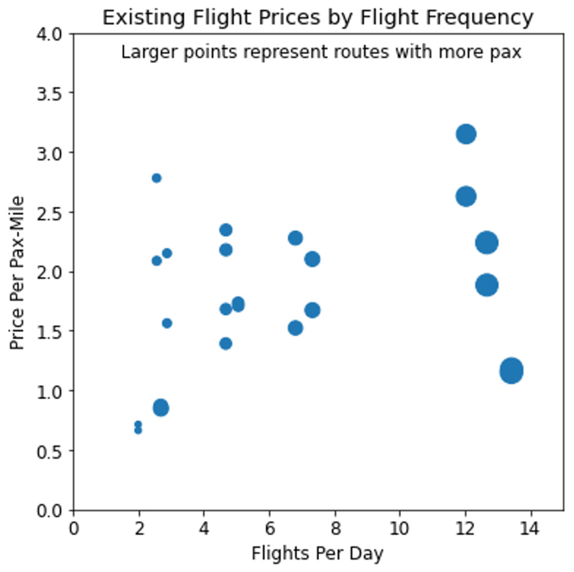 Figure 11. Existing flight prices by flight frequency.