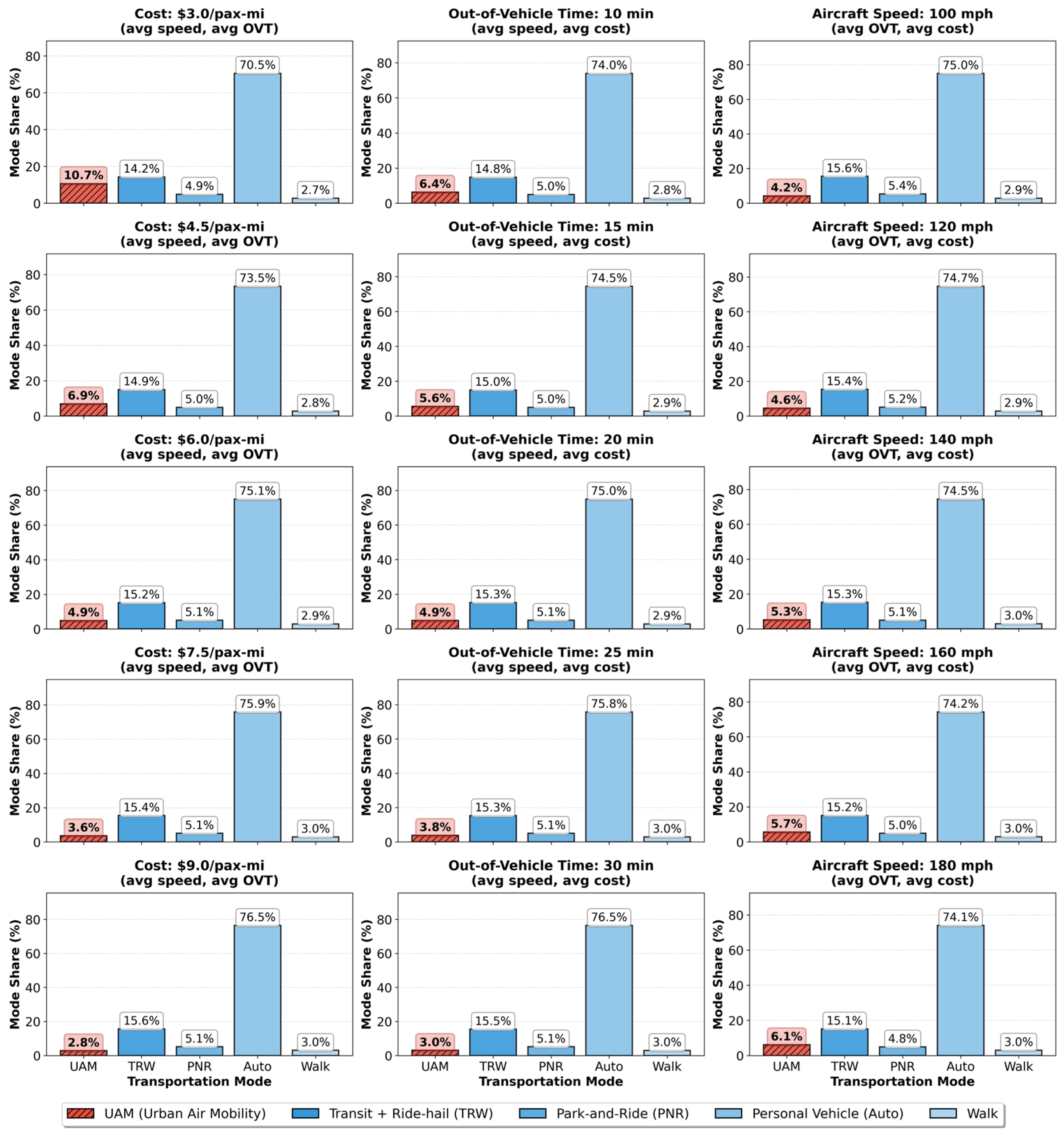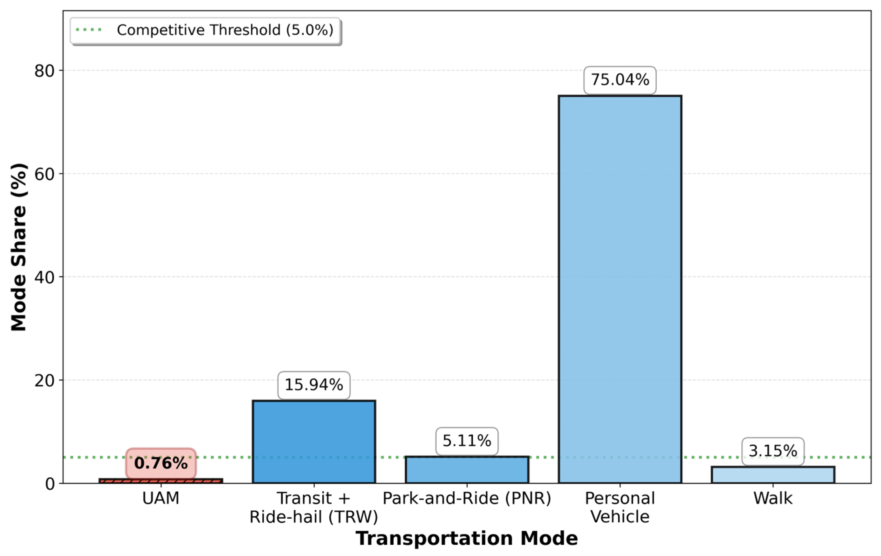 Figure 12. Mode shares without a UAM service.