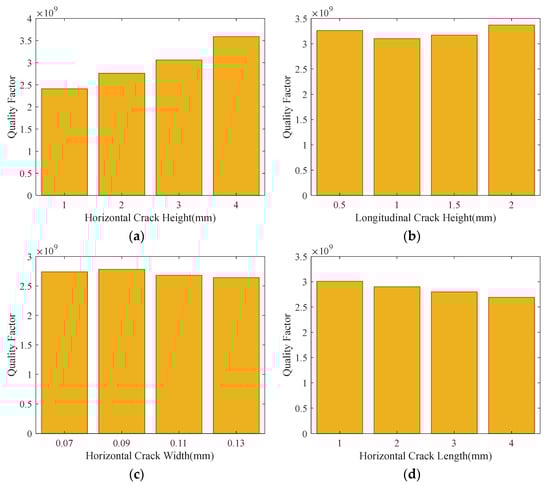 Figure 8c,d simulate the effects of transverse crack width and length, respectively, on the Q-factor. As shown in