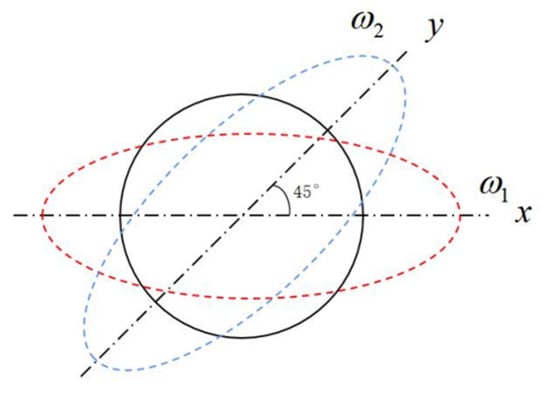 φn is the phase angle of the n-th order unbalanced mass, and θ is the azimuth angle of the standing wave. The dynamic equation of the resonator’s central rod, considering the support forces, can be expressed as follows: