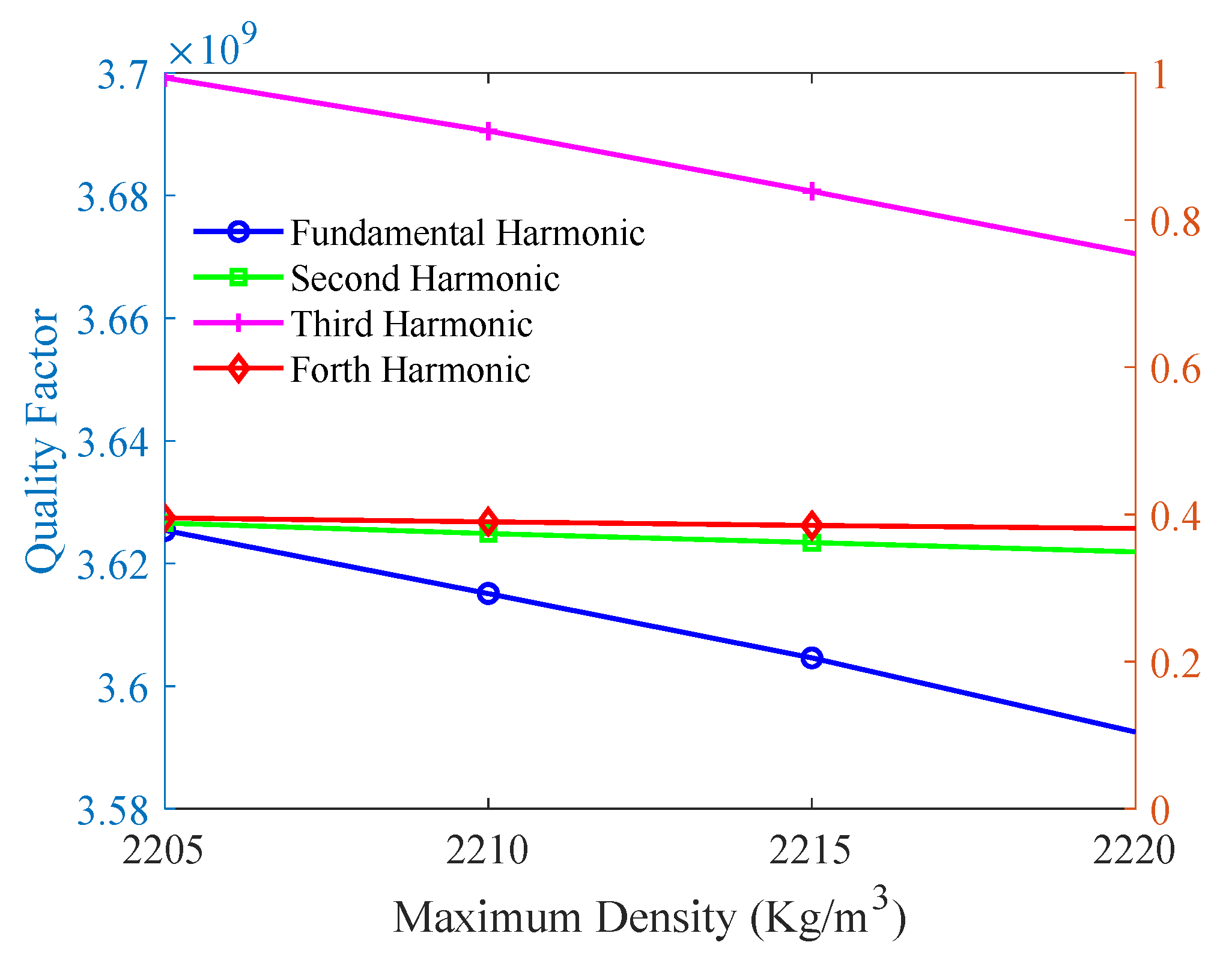 This study employs finite element simulation to analyze the impact of the first, second, third, and fourth spatial harmonics of mass (density) inhomogeneity on the Q-factor.