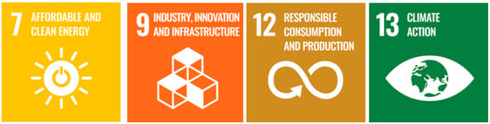 The sustainability potential of additive manufacturing for batteries can also be contextualized within the framework of the United Nations Sustainable Development Goals (SDGs) []. By reducing material waste and promoting the use of safer, bio-derived, or recyclable inputs, 3D-printed batteries directly support SDG 12: Responsible Consumption and Production []. Their role in enabling distributed energy storage for renewable power systems contributes to SDG 7: Affordable and Clean Energy [], while the reduction of carbon-intensive processes and logistics aligns with SDG 13: Climate Action []. Furthermore, the ability to design recyclable and modular devices enhances progress toward SDG 9: Industry, Innovation, and Infrastructure, fostering innovation in sustainable manufacturing practices []. As such, the integration of additive manufacturing into battery production not only addresses technical and economic challenges but also supports global efforts toward a more sustainable and equitable energy future. Figure 3 depicts the aforementioned corresponding SDGs. These synergies highlight the broader societal and environmental impact of advancing additive manufacturing in energy storage.