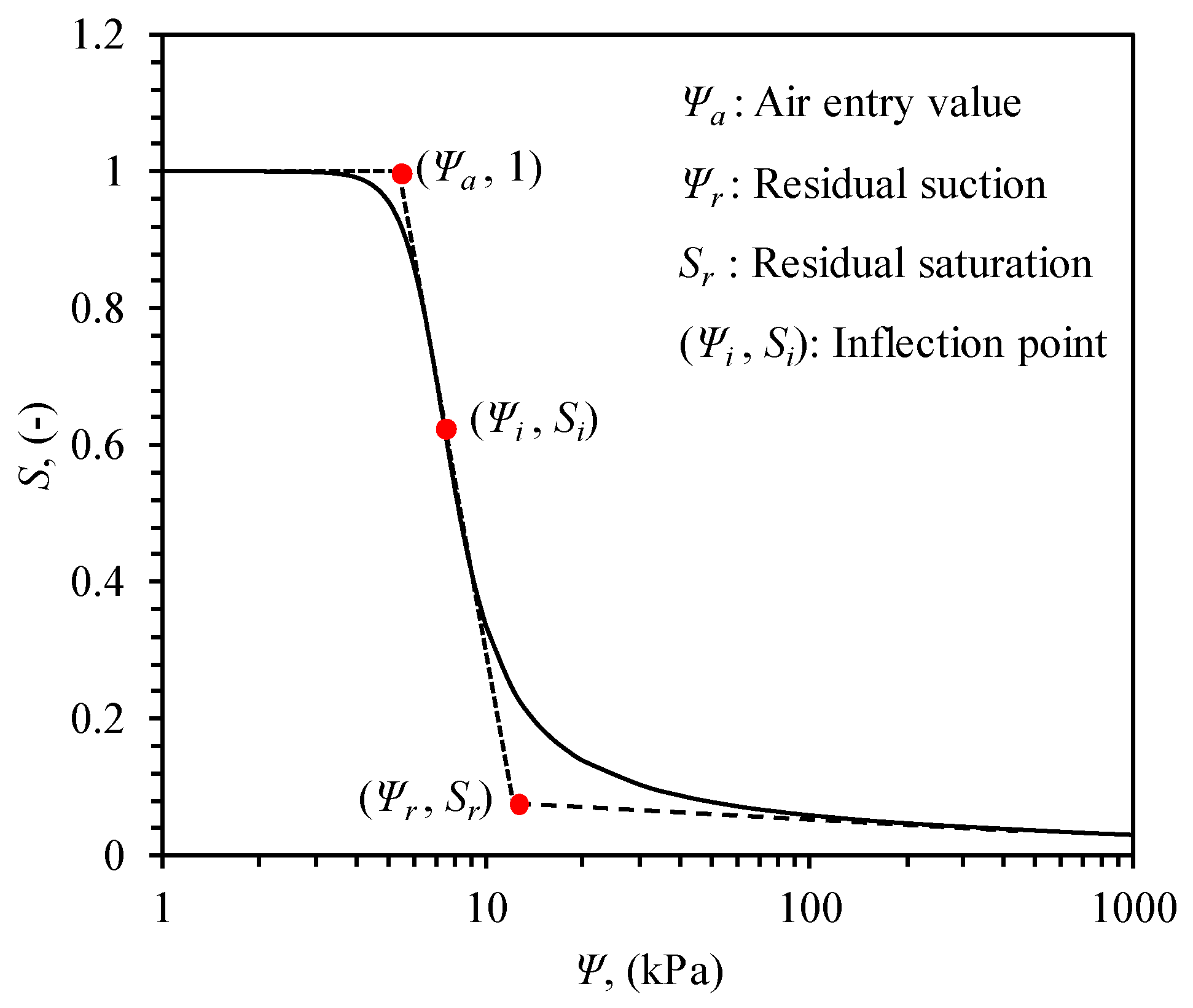- Fredlund, D.; Xing, A. Equations for the soil-water characteristic curve. Can. Geotech. J. 1994, 31, 521–532. [Google Scholar] [CrossRef]
