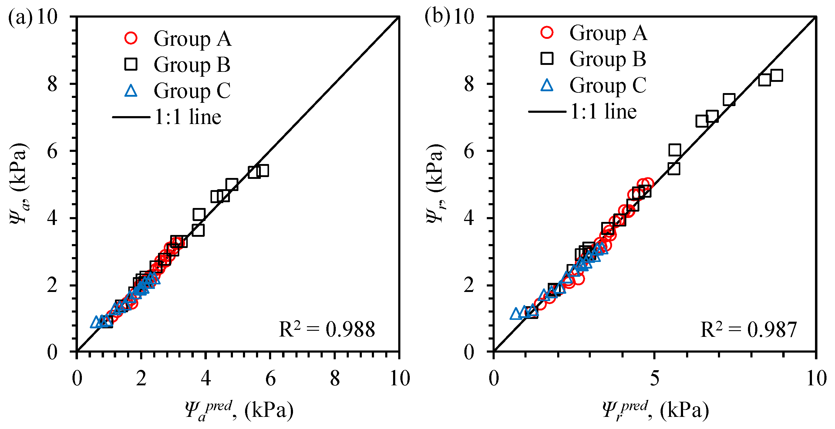 - Sillers, W.S.; Fredlund, D.G. Statistical assessment of soil-water characteristic curve models for geotechnical engineering. Can. Geotech. J. 2001, 38, 1297–1313. [Google Scholar] [CrossRef]