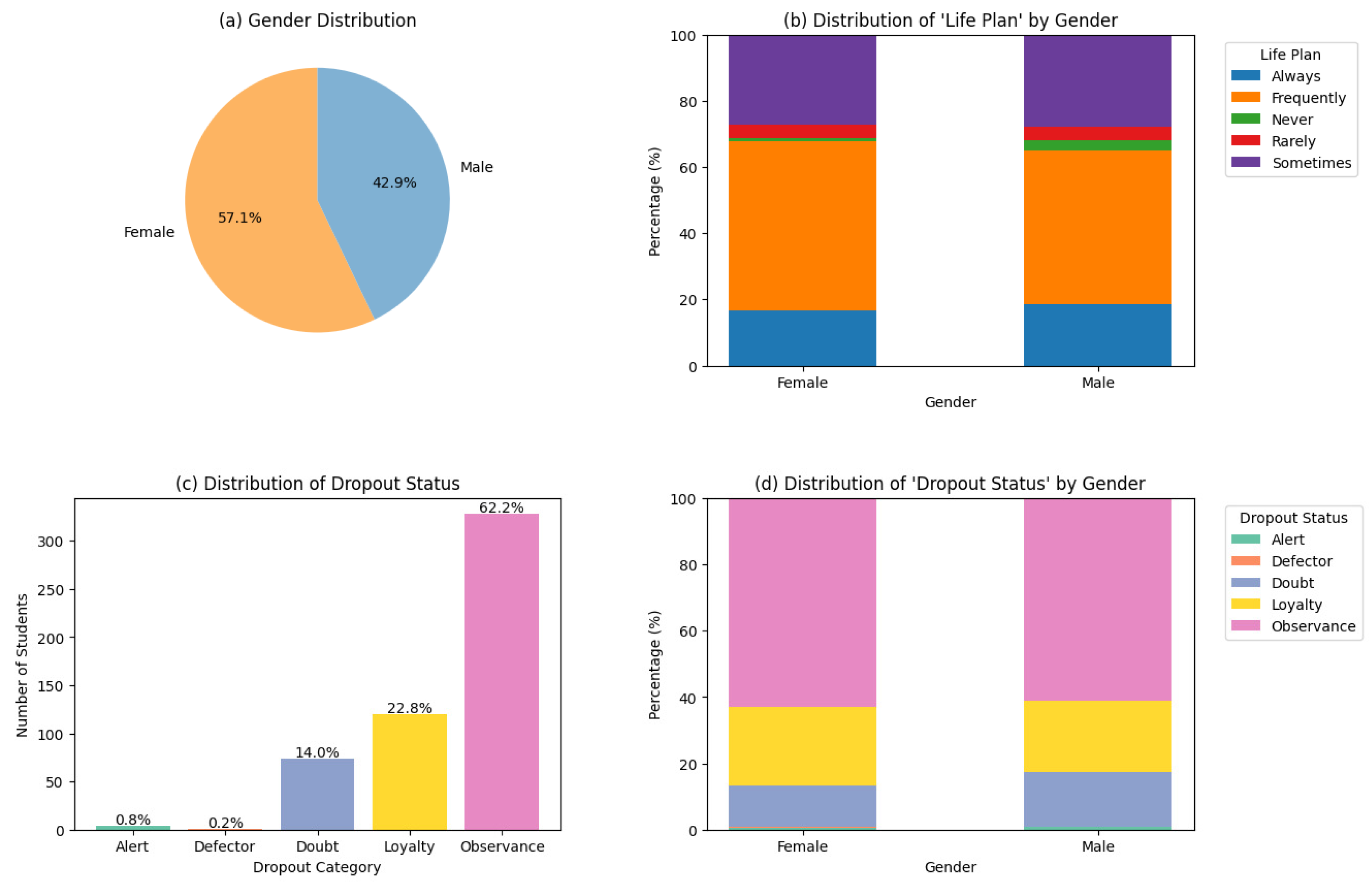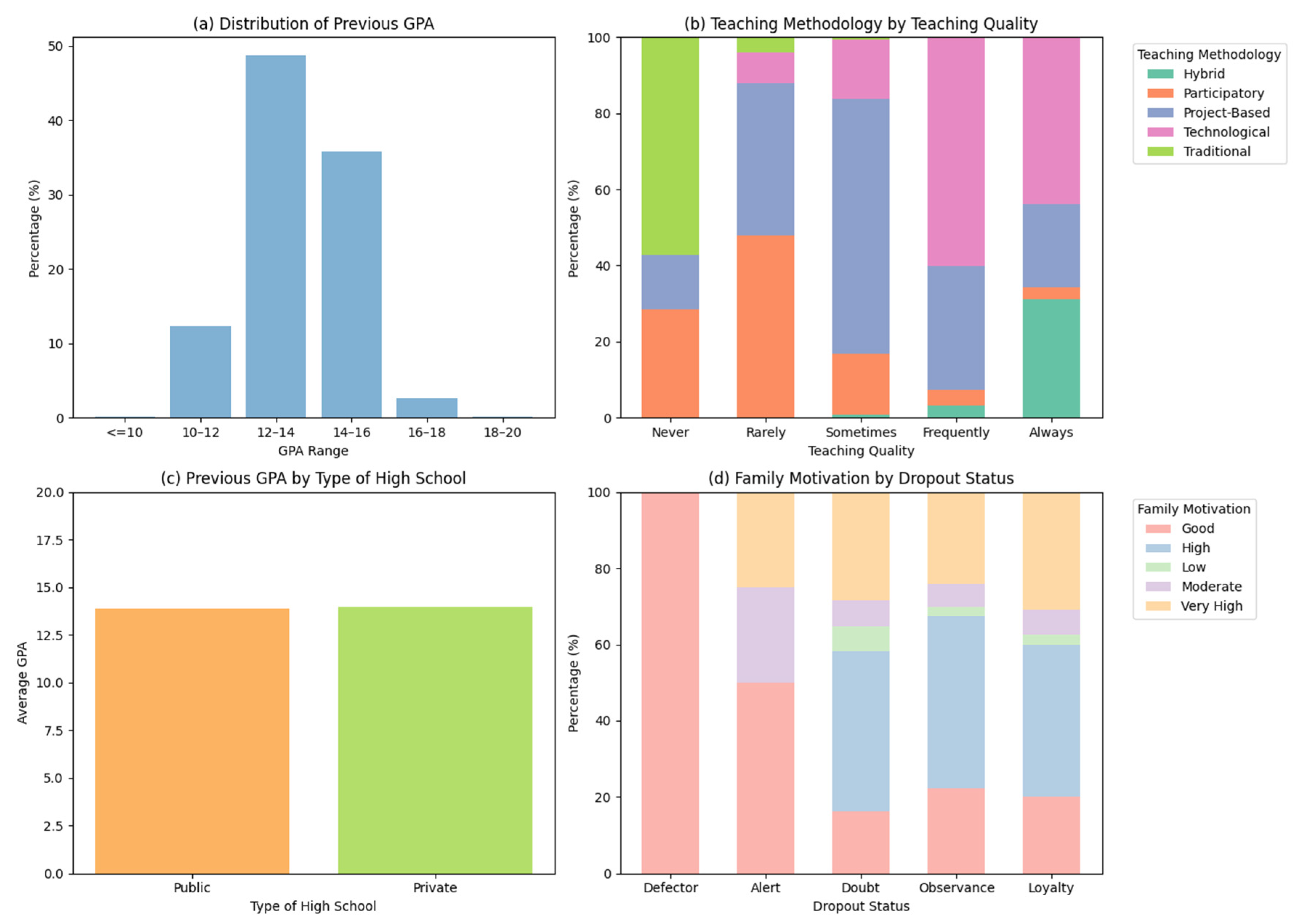 - Barragán, S.; González, L. Complexities of student dropout in higher education: A multidimensional analysis. Front. Educ. 2024, 9, 1461650. [Google Scholar] [CrossRef]