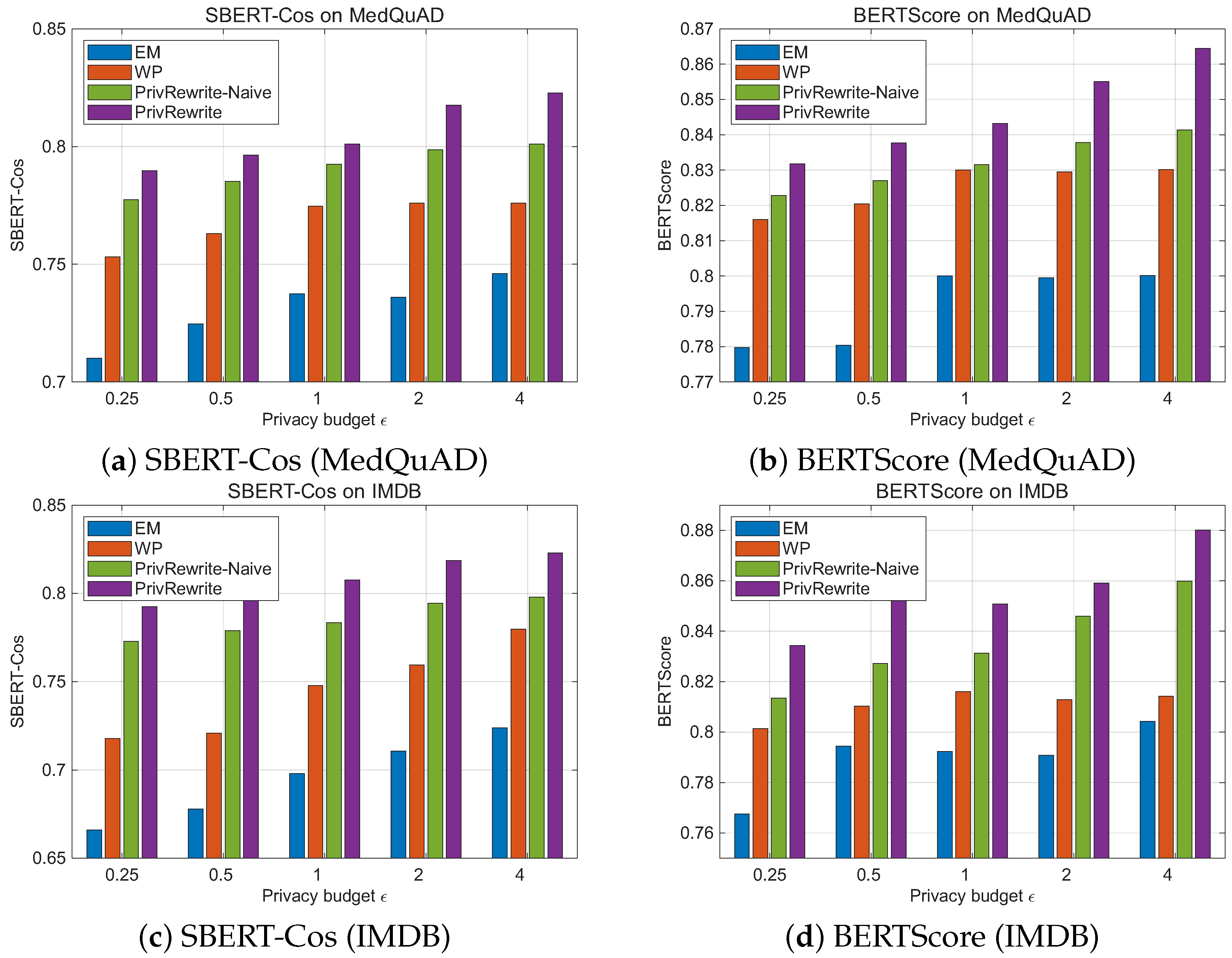 - Feyisetan, O.; Balle, B.; Drake, T.; Diethe, T. Privacy-and utility-preserving textual analysis via calibrated multivariate perturbations. In Proceedings of the International Conference on Web Search and Data Mining, Houston, TX, USA, 3–7 February 2020; pp. 178–186. [Google Scholar][Green Version]