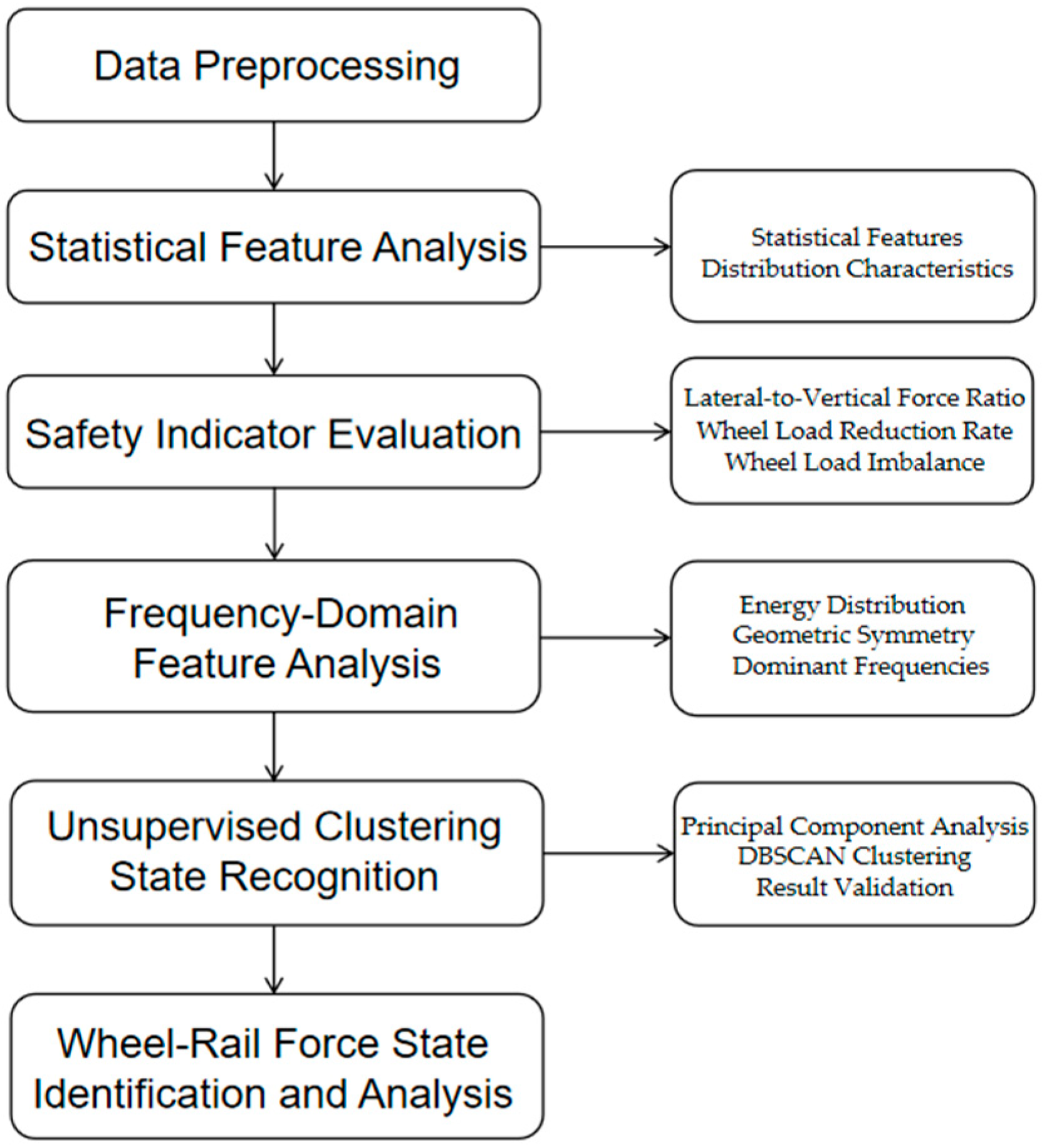 Wang J, Shen T, Huo L, Wang Y, Qin H. State Evaluation of Wheel–Rail Force in High-Speed Railway Turnouts Based on Multivariate Analysis and Unsupervised Clustering. Applied Sciences. 2025; 15(22):11934. https://doi.org/10.3390/app152211934