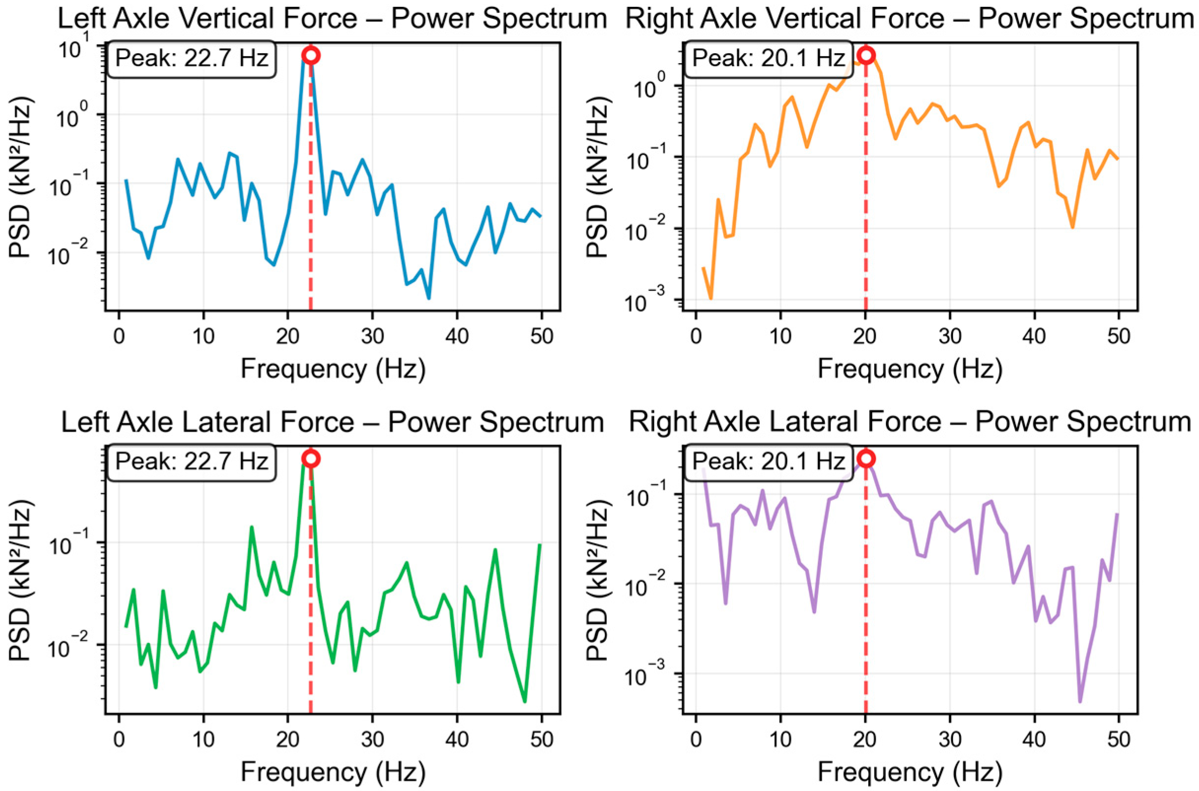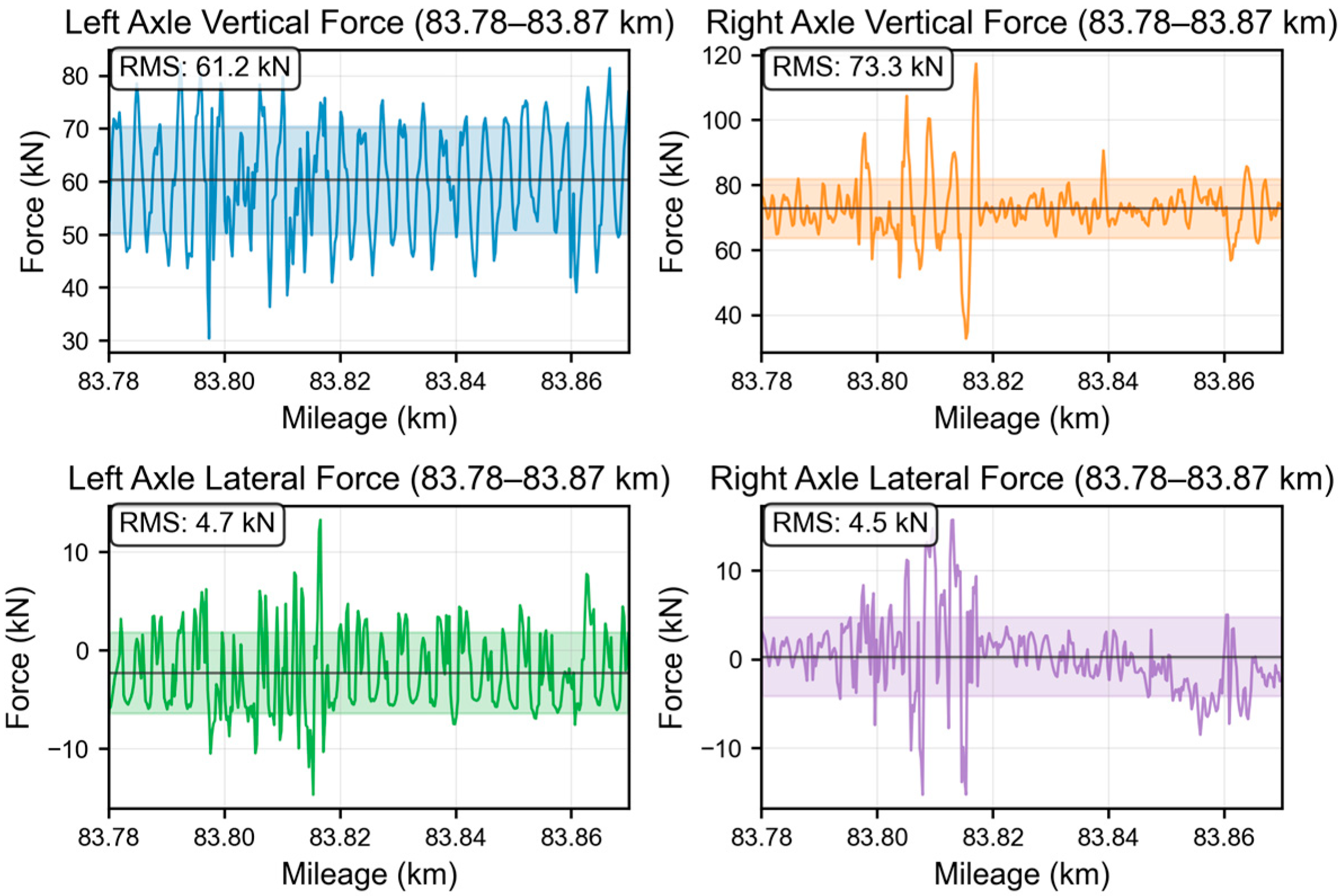 3.1.1. Time-Domain Analysis of Wheel–Rail Forces