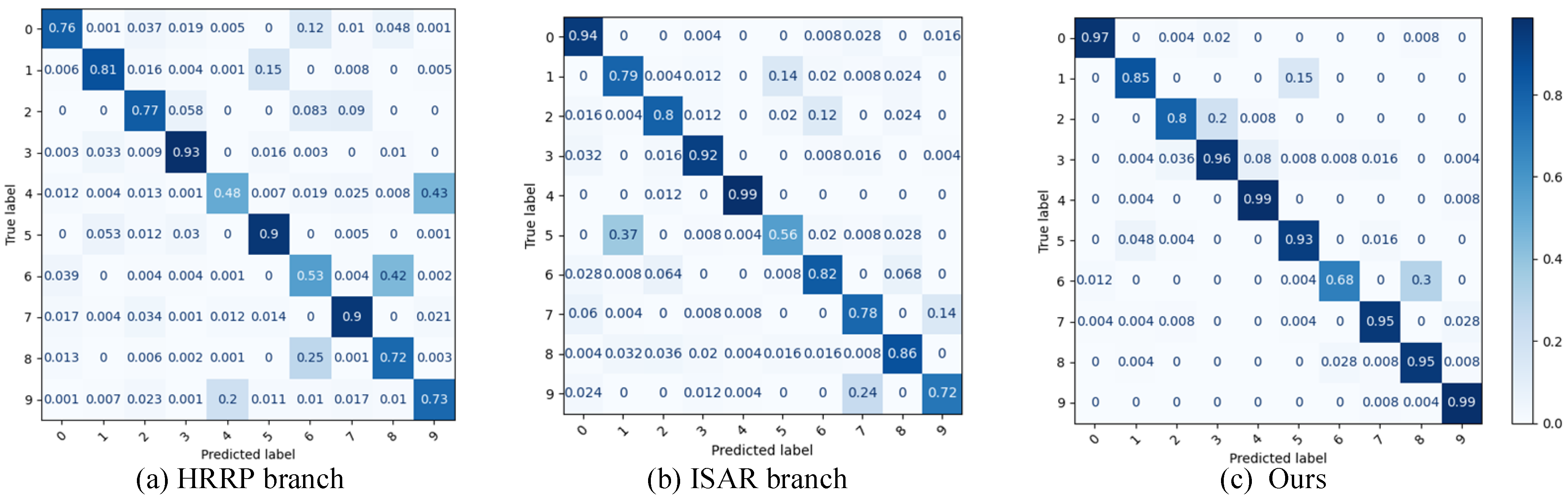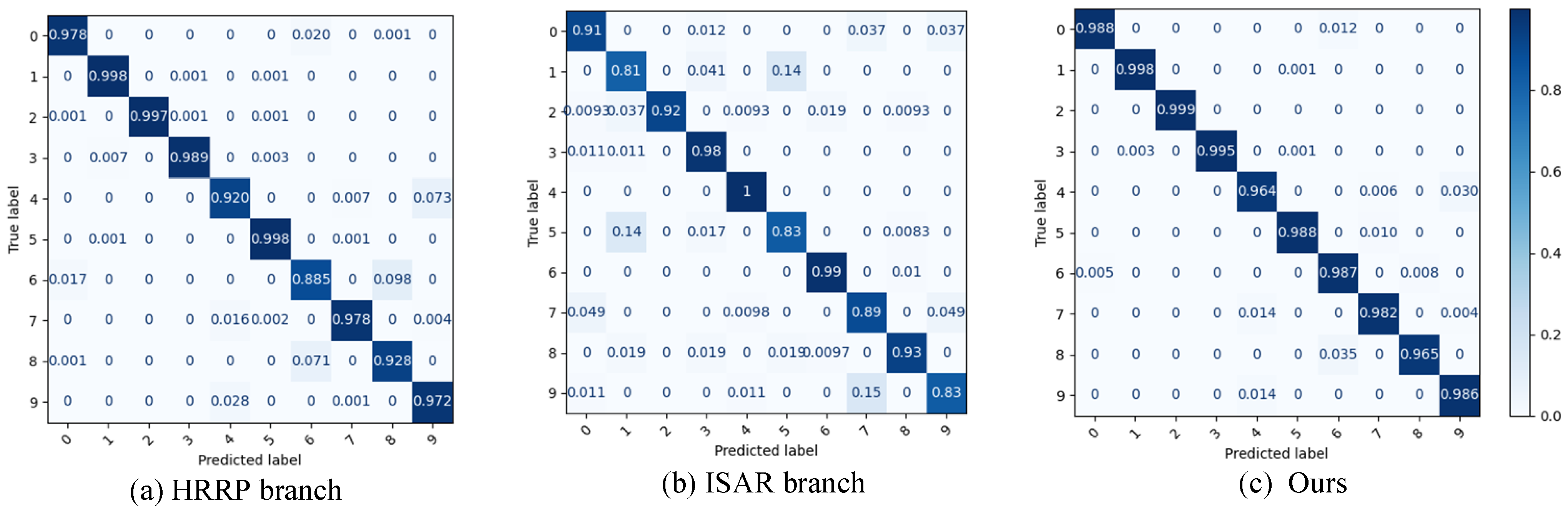 | Our fusion method | HRRPs + ISAR images | 0.9852 ± 0.0021 |