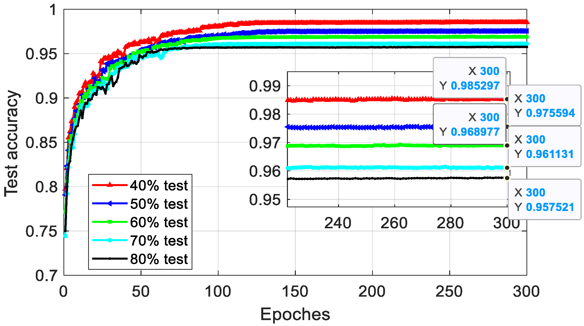 | Two-dimensional data | ISAR images | 0.9101 ± 0.0078 |