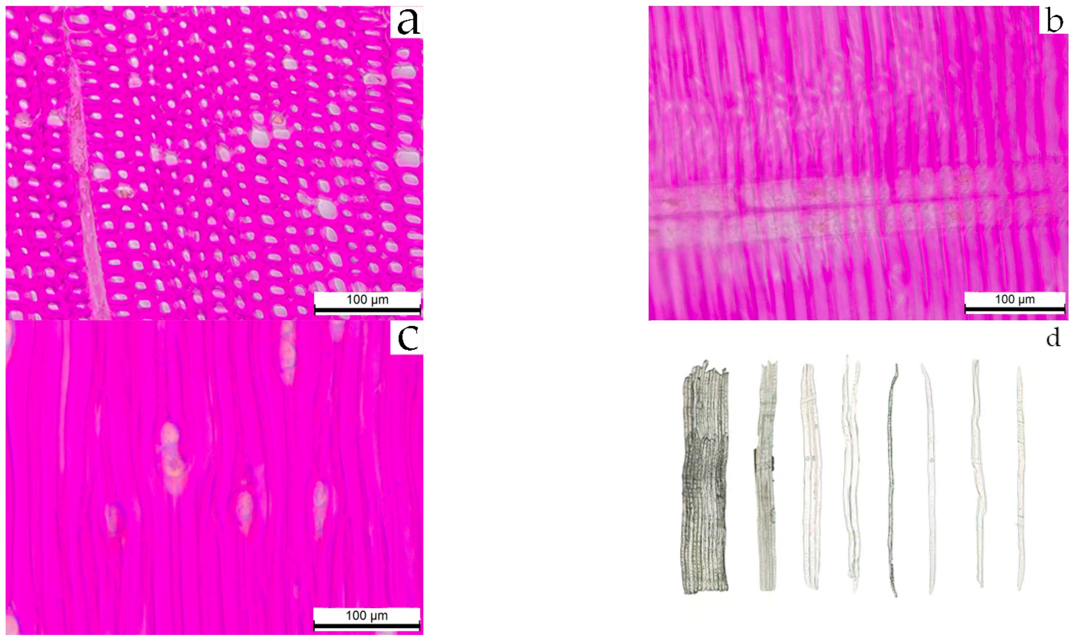 - Yang, L.; Luo, J.; Luo, J.X.; Jia, C.; Qi, J.Q.; Jiang, Y.Z.; Huang, X.Y.; Xie, J.L. Characteristics and Physical and Mechanical Properties of Fir Tubular Cells in Dechang Area, Sichuan, China. J. Sichuan Agric. Univ. 2020, 38, 457–462. [Google Scholar] [CrossRef]