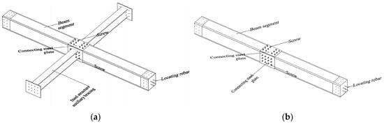 Schematic diagram of beam segment connection node structures. (a) node connecting the auxiliary SS bracing, (b) node not connecting the auxiliary SS bracing.