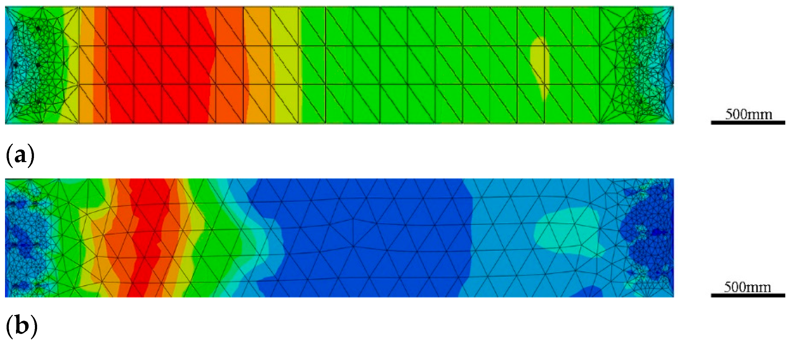 3.3. Analysis of Axial Compression of Specimen When the Boundary Is a Rigid Body Section