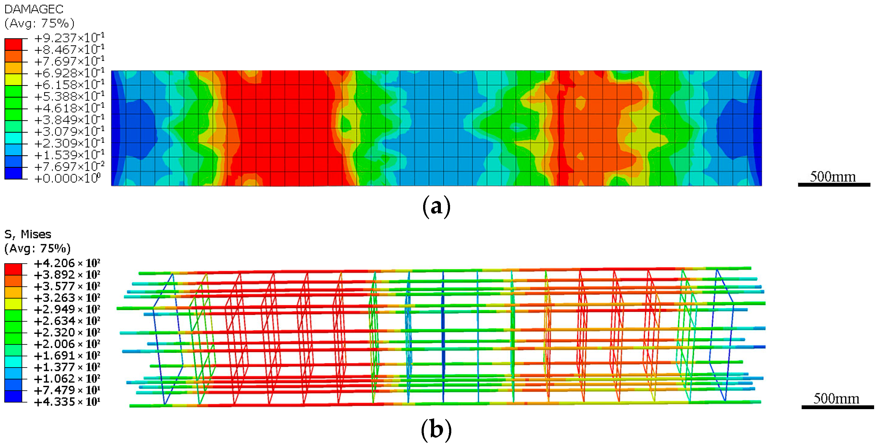 - Zhang, T.; Hou, Z.; Chen, Q.; Li, X.; Fang, Y.; Zhang, S.; Sun, W. A novel damage model integrated into the elastoplastic constitutive model and numerical simulations of reinforced concrete structures under cyclic loading. J. Build. Eng. 2024, 84, 108–670. [Google Scholar] [CrossRef]