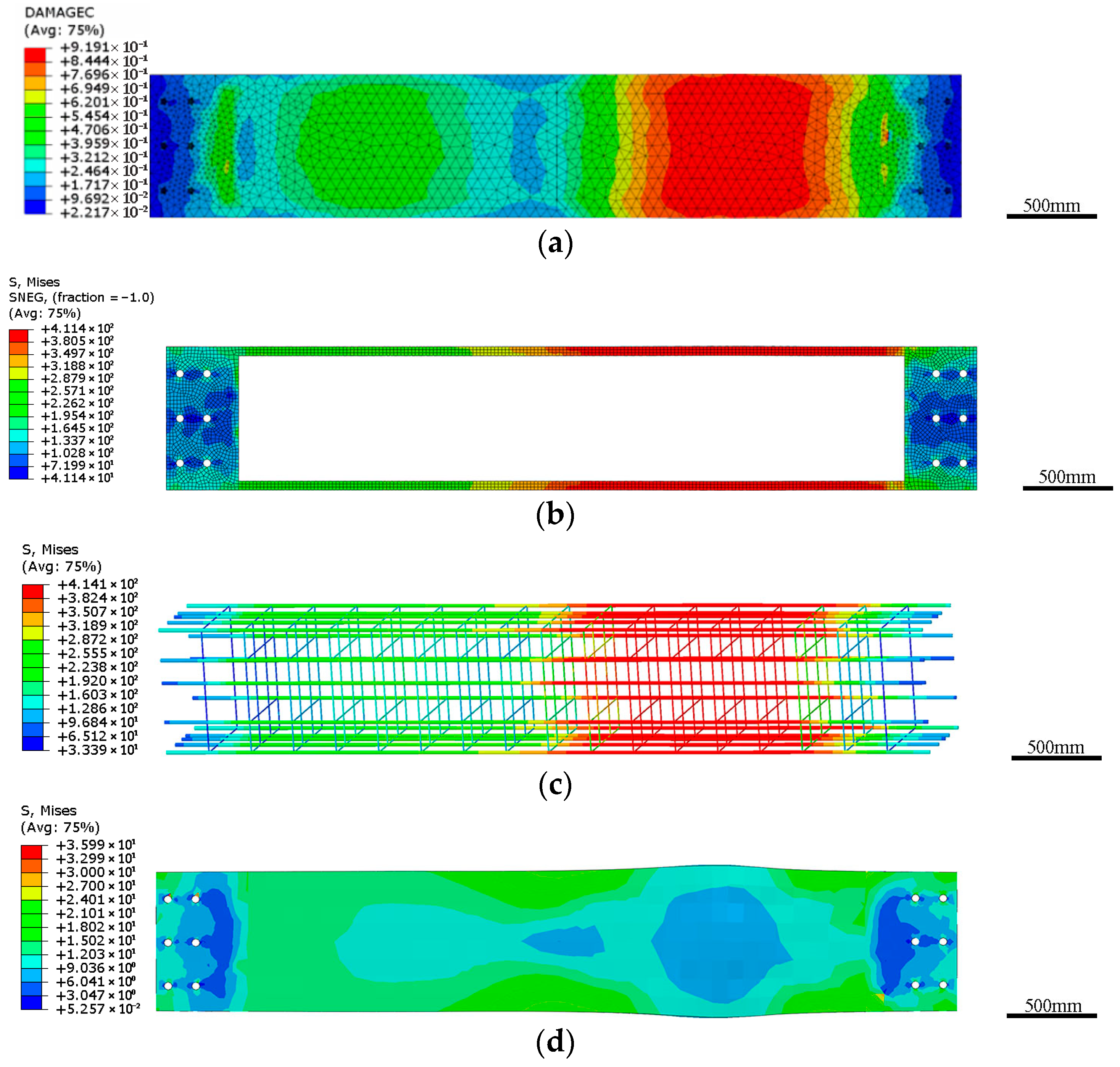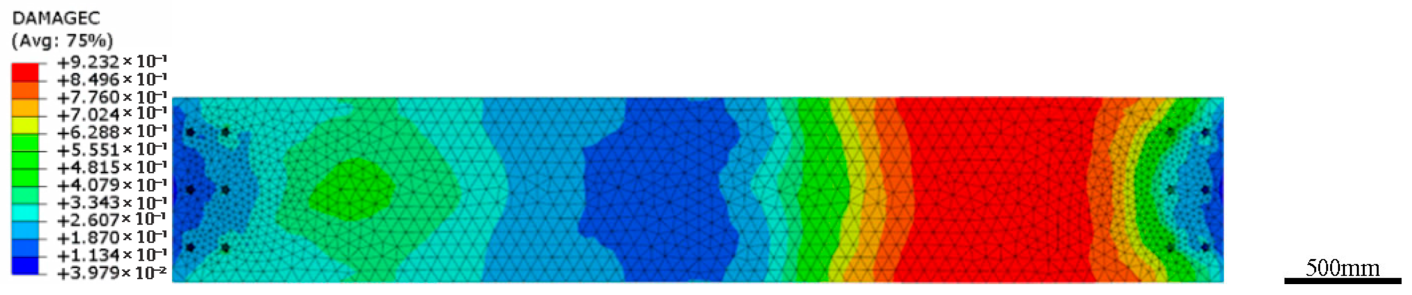 - Yang, F.; Dong, X.; Zhou, S.; Huang, Y.C. ABAQUS Concrete Plastic Damage Factor Calculation Method and Application Research. Sichuan Archit. 2017, 37, 173–177. [Google Scholar]