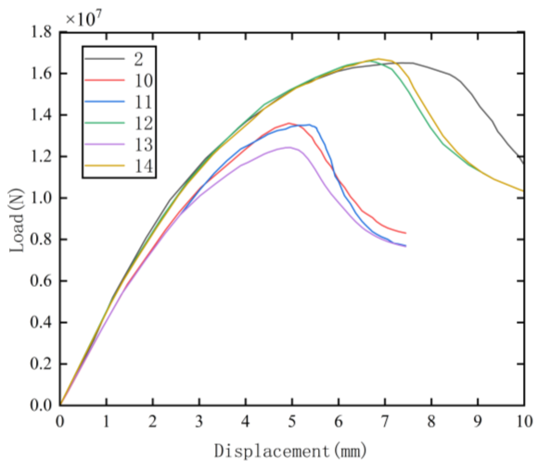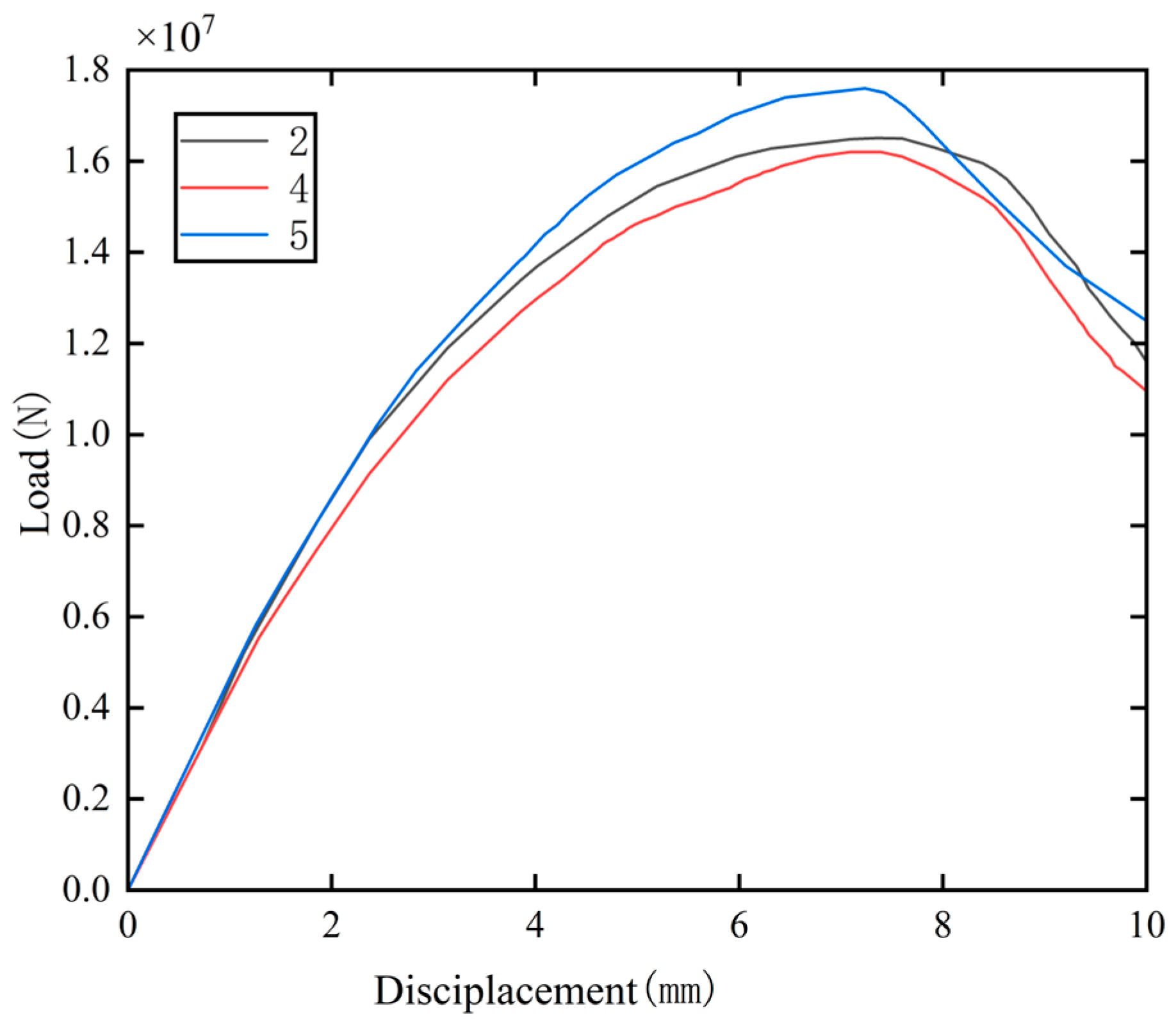 3.6. Influence of Beam Sleeve Thickness on the Mechanical Properties of Specimens Subjected to Axial Compression