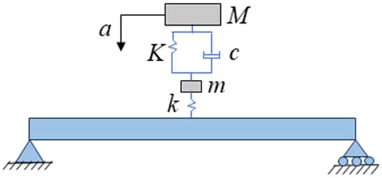 To demonstrate the fleet monitoring concept for a bridge, a simple quarter-car and beam model with a smooth profile is simulated in MATLAB R2025b (Figure 1). A fleet of quarter-car vehicles is generated using the mean and standard deviation of vehicle properties listed in Table 1. The statistical parameters for typical truck fleet properties are adopted from Belay et al. []. The beam is modelled as simply supported using a finite element discretization. Vehicles are then simulated crossing the beam, and the corresponding acceleration responses are obtained. Vehicle–bridge coupling is introduced at the tyre contact points through the interaction force vector, and the coupled system is solved using the Newmark-beta integration scheme. For each simulation, deflections under the axle are reconstructed from the measured accelerations and vehicle properties using the inverse Newmark-beta method [,,,]. From these inferred deflections, MRILs are calculated for each vehicle.