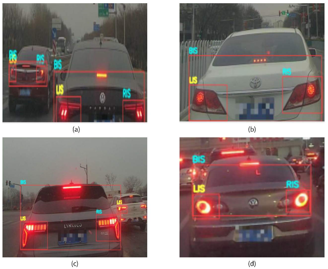 - Wang, J.G.; Zhou, L.; Pan, Y.; Lee, S.; Song, Z.; Han, B.S.; Saputra, V.B. Appearance-Based Brake-Lights Recognition Using Deep Learning and Vehicle Detection. In Proceedings of the 2016 IEEE Intelligent Vehicles Symposium (IV), Gothenburg, Sweden, 19–22 June 2016; pp. 815–820. [Google Scholar] [CrossRef]