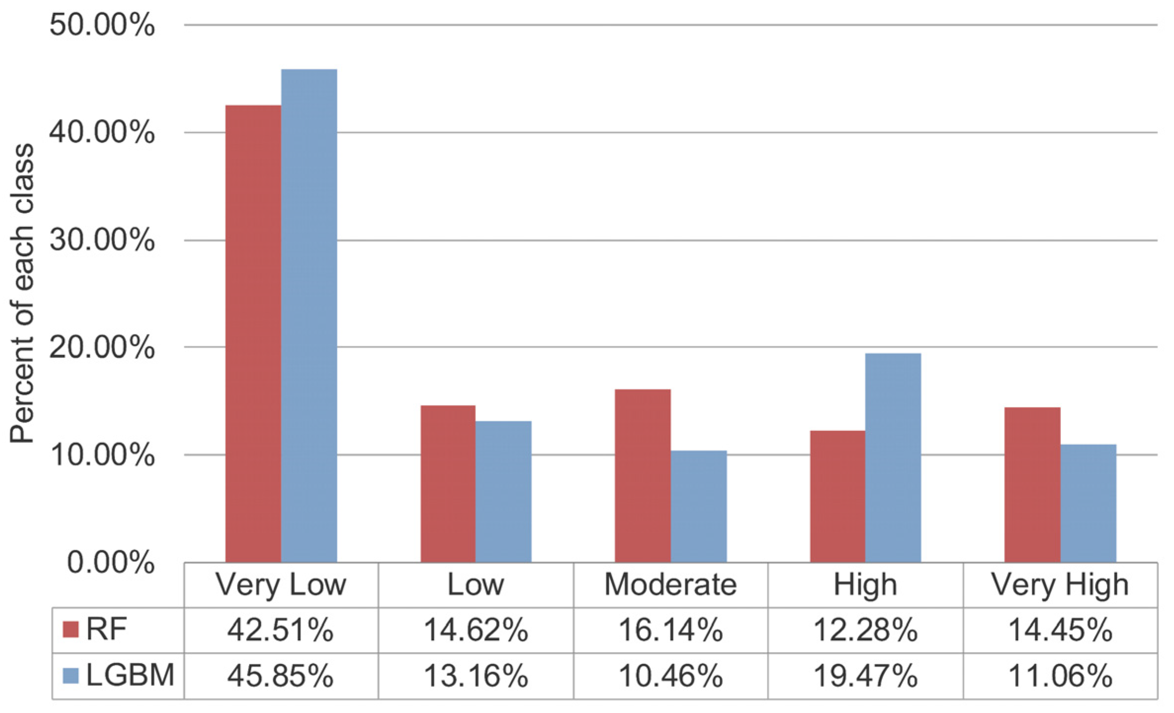 At this stage, a landslide susceptibility map of Qingchuan County was constructed, and spatial statistics were performed across different susceptibility levels to quantify their distributional characteristics. Model interpretability was further enhanced using SHAP analysis, which revealed the varying contributions of conditioning factors at the local level for individual samples and assessed their overall importance at the global level. This multi-scale interpretation enabled the identification of dominant controlling factors and improved the transparency and reliability of model outcomes.