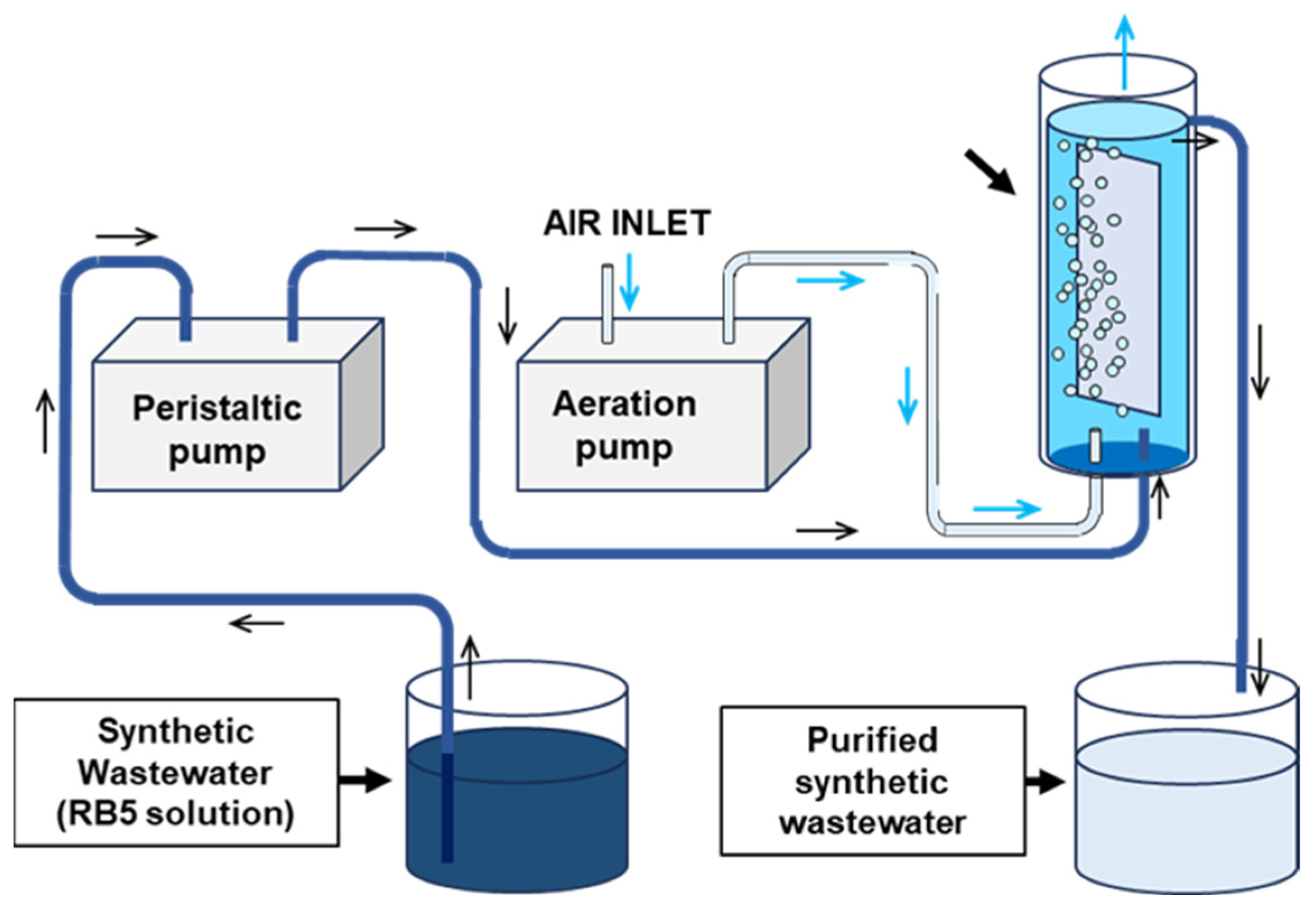 - Cherif, S.; Rezzaz-Yazid, H.; Ayachine, S.; Toukal, I.; Boudechiche, N.; Belmedani, M.; Djelal, H.; Sadaoui, Z. Continuous Fixed Bed Bioreactor for the Degradation of Textile Dyes: Phytotoxicity Assessment. Processes 2024, 12, 2222. [Google Scholar] [CrossRef]