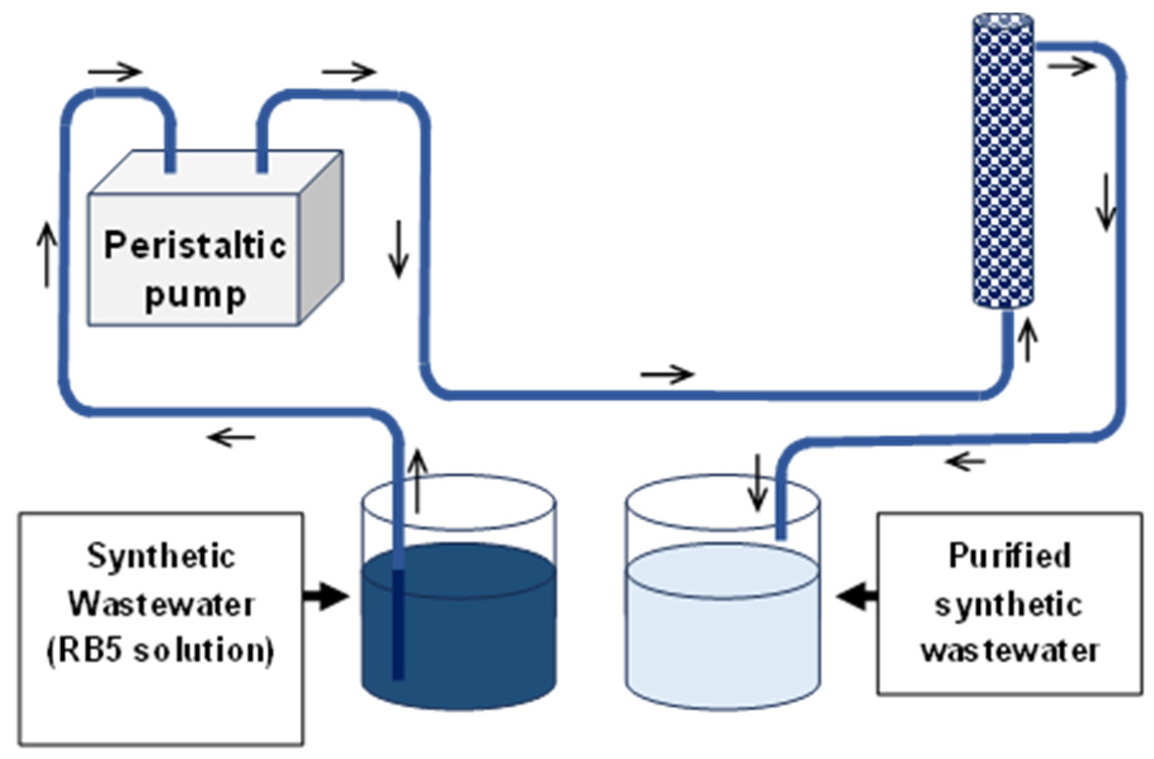 - López-Cervantes, J.; Sánchez-Machado, D.I.; Sánchez-Duarte, R.G.; Correa-Murrieta, M.A. Study of a Fixed-Bed Column in the Adsorption of an Azo Dye from an Aqueous Medium Using a Chitosan–Glutaraldehyde Biosorbent. Adsorpt. Sci. Technol. 2018, 36, 215–232. [Google Scholar] [CrossRef]
