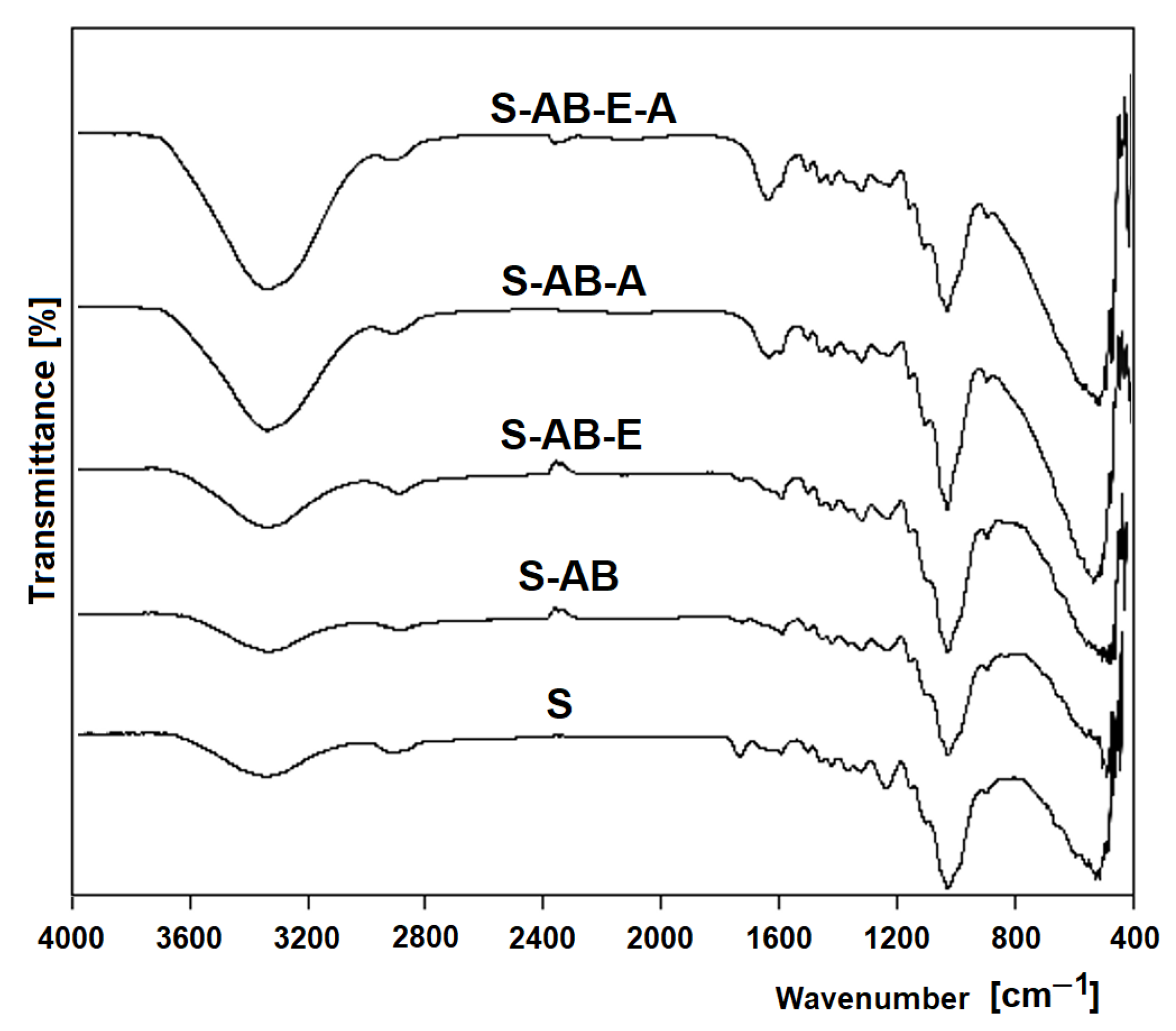 2.3. Preparation of Sorbents Used in the Study: S-AB and S-AB-EA