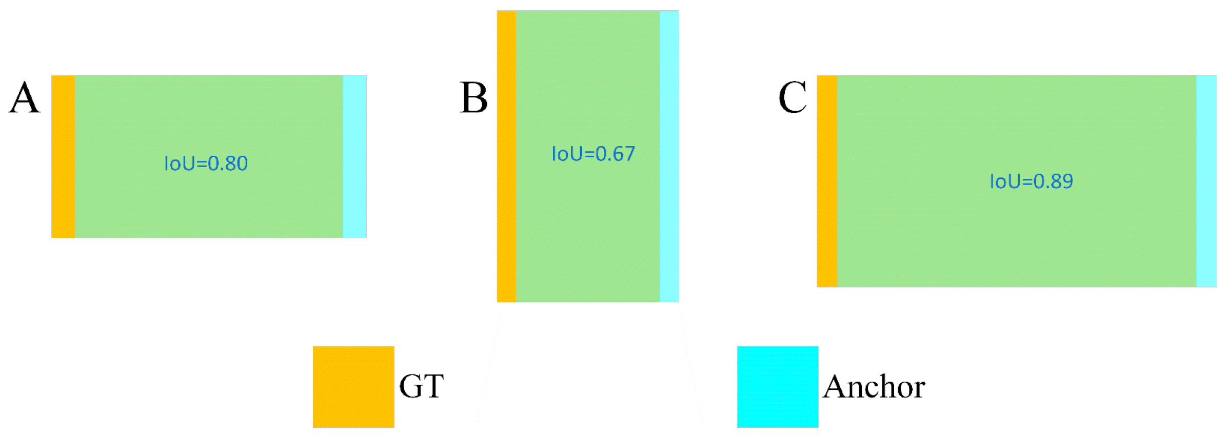 - Rezatofighi, H.; Tsoi, N.; Gwak, J.; Sadeghian, A.; Reid, I.; Savarese, S. Generalized Intersection Over Union: A Metric and a Loss for Bounding Box Regression. In Proceedings of the IEEE Conference on Computer Vision and Pattern Recognition, Long Beach, CA, USA, 15–20 June 2019; pp. 658–666. [Google Scholar]